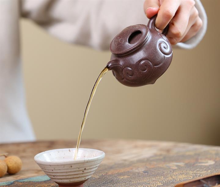 【泥料特點】砂土氣重,似淳實農民,日久使用,漸露鋒芒,養成變化,溫潤莊重。紫砂是壹種雙重氣孔結構的多孔性材質,氣孔微細,密度高。用紫砂壺沏茶,不失原味,且香不渙散,得茶之真香真味。紫砂使用越久,壺身色澤越發光亮照人,氣韻溫雅。紫砂壺長久使用器身會因撫摸擦拭,變得越發溫潤光澤。