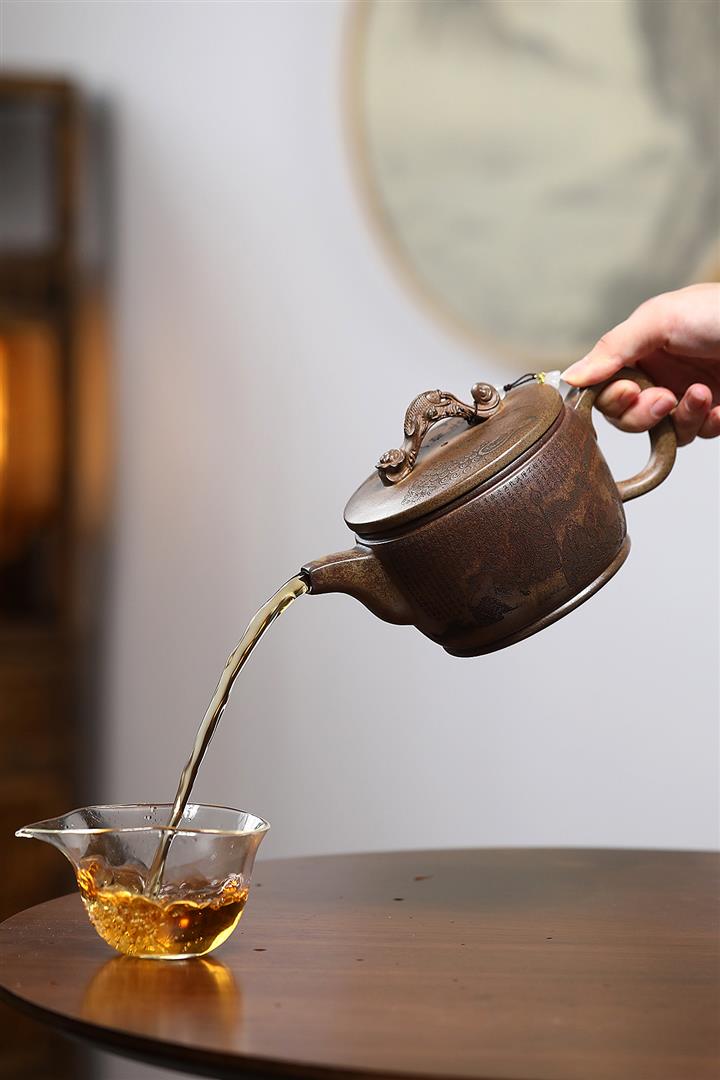 370cc原礦古銅泥銅韻松趣龍蛋泡茶壺POT9893
