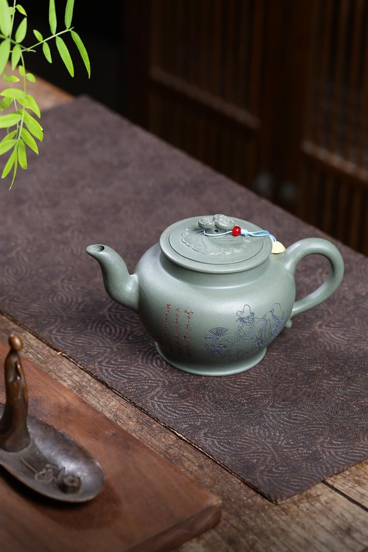 【作品介紹】此款壺形線條流暢,壺把,壺嘴,壺身壹氣呵成栩栩如生,是收藏把玩的好壺,泥料色澤古樸典雅,日久使用,漸露鋒芒,養成變化快,溫潤莊重,用其泡茶,使用的年代久,壺身就溫潤,泡出來的茶湯也就醇郁芳馨。