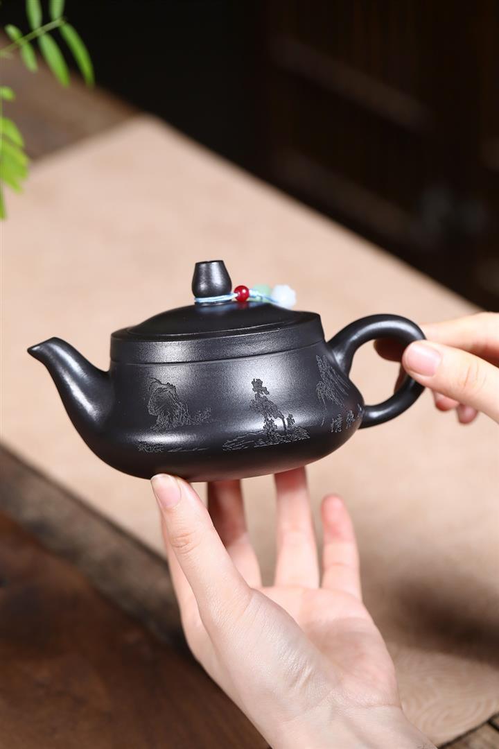【作品介紹】此款壺形線條流暢,壺把,壺嘴,壺身壹氣呵成栩栩如生,是收藏把玩的好壺,泥料色澤古樸典雅,日久使用,漸露鋒芒,養成變化快,溫潤莊重,用其泡茶,使用的年代久,壺身就溫潤,泡出來的茶湯也就醇郁芳馨。