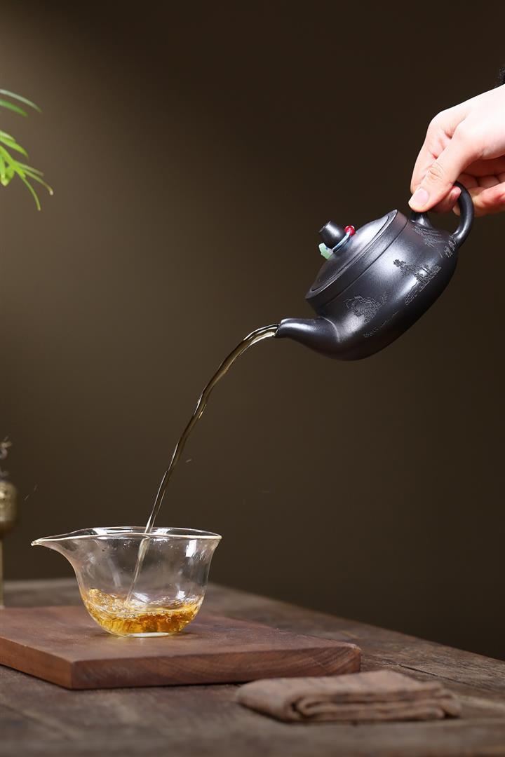 【泥料特點】砂土氣重,似淳實農民,日久使用,漸露鋒芒,養成變化,溫潤莊重。紫砂是壹種雙重氣孔結構的多孔性材質,氣孔微細,密度高。用紫砂壺沏茶,不失原味,且香不渙散,得茶之真香真味。紫砂使用越久,壺身色澤越發光亮照人,氣韻溫雅。紫砂壺長久使用器身會因撫摸擦拭,變得越發溫潤光澤。