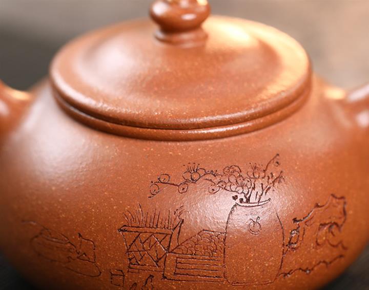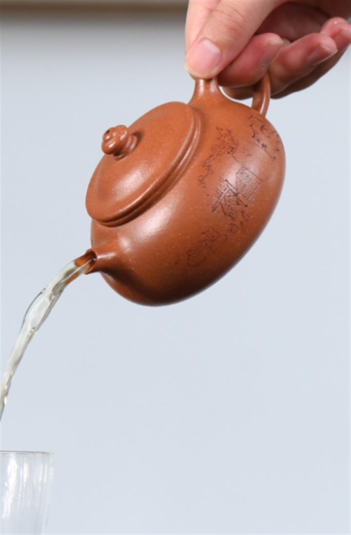 【泥料特點】砂土氣重,似淳實農民,日久使用,漸露鋒芒,養成變化,溫潤莊重。紫砂是壹種雙重氣孔結構的多孔性材質,氣孔微細,密度高。用紫砂壺沏茶,不失原味,且香不渙散,得茶之真香真味。紫砂使用越久,壺身色澤越發光亮照人,氣韻溫雅。紫砂壺長久使用器身會因撫摸擦拭,變得越發溫潤光澤。
