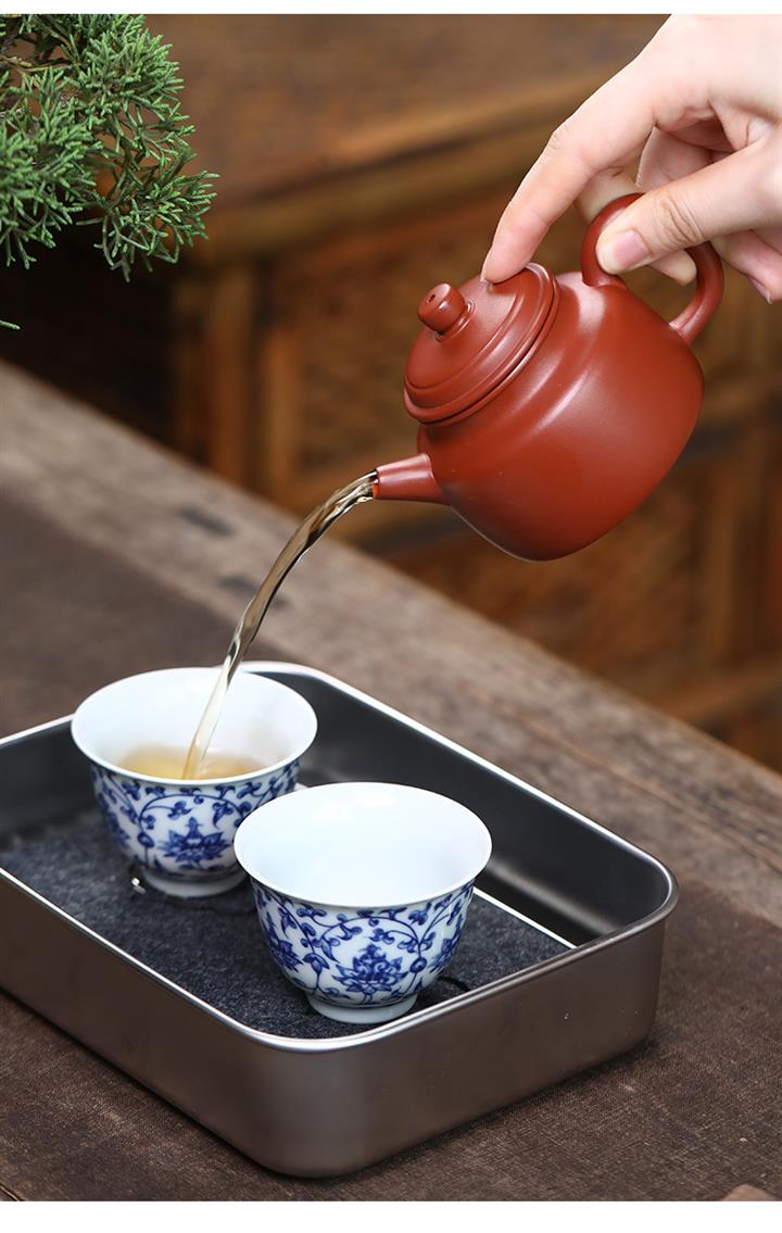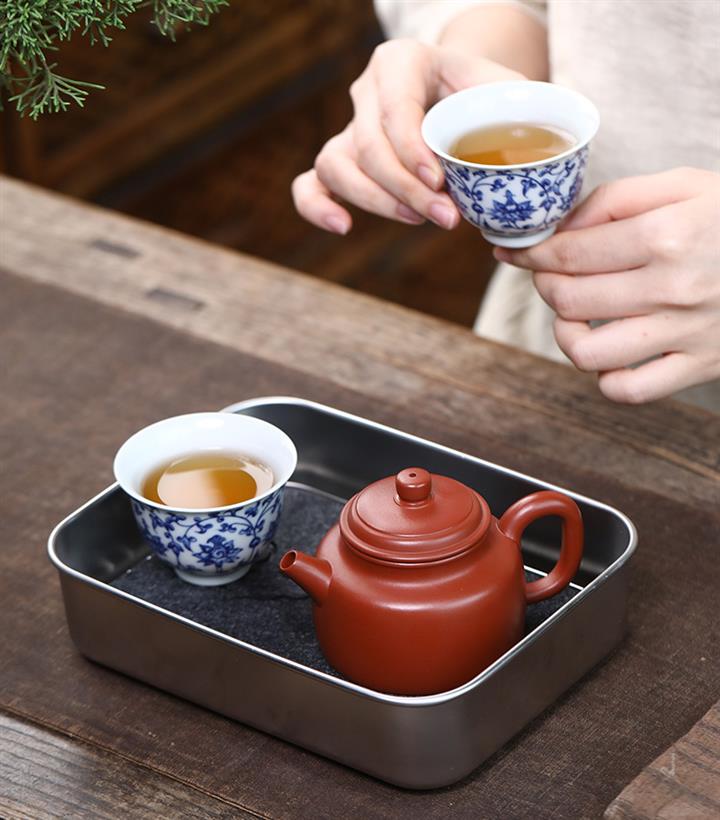 【泥料特點】砂土氣重,似淳實農民,日久使用,漸露鋒芒,養成變化,溫潤莊重。紫砂是壹種雙重氣孔結構的多孔性材質,氣孔微細,密度高。用紫砂壺沏茶,不失原味,且香不渙散,得茶之真香真味。紫砂使用越久,壺身色澤越發光亮照人,氣韻溫雅。紫砂壺長久使用器身會因撫摸擦拭,變得越發溫潤光澤。