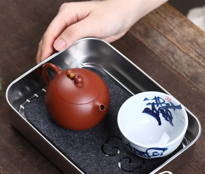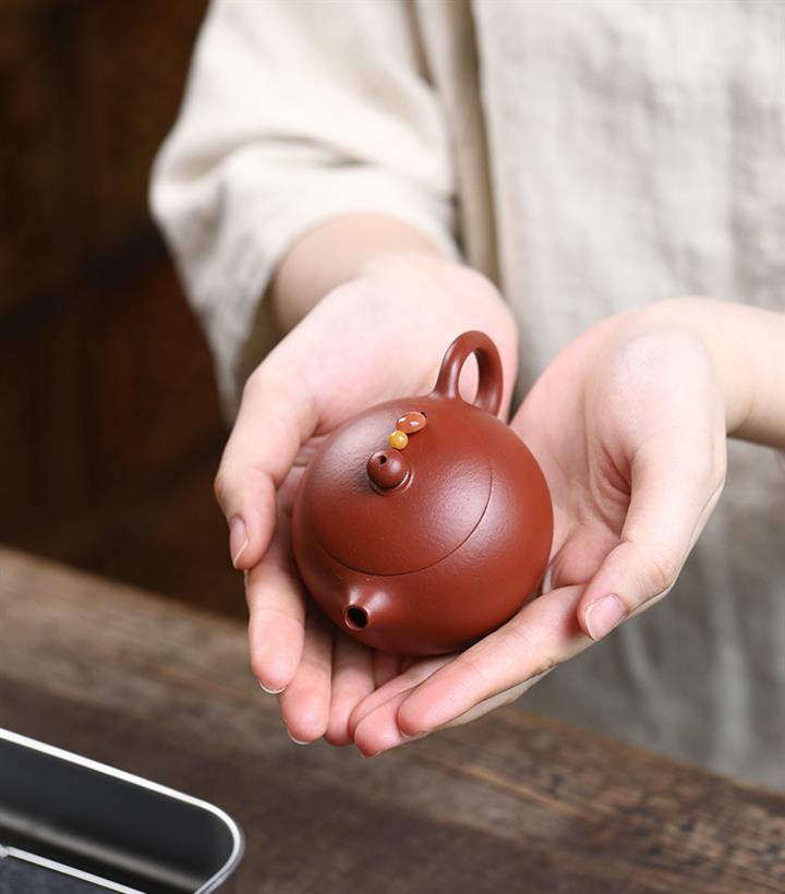 【泥料特點】砂土氣重,似淳實農民,日久使用,漸露鋒芒,養成變化,溫潤莊重。紫砂是壹種雙重氣孔結構的多孔性材質,氣孔微細,密度高。用紫砂壺沏茶,不失原味,且香不渙散,得茶之真香真味。紫砂使用越久,壺身色澤越發光亮照人,氣韻溫雅。紫砂壺長久使用器身會因撫摸擦拭,變得越發溫潤光澤。
