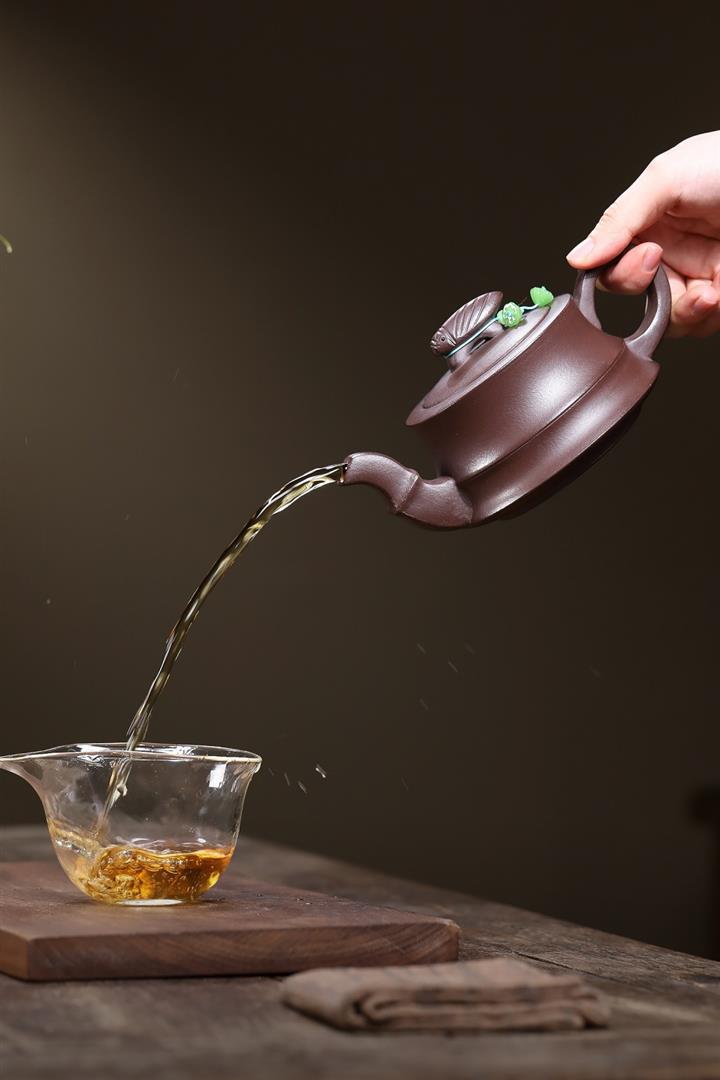 【泥料特點】砂土氣重,似淳實農民,日久使用,漸露鋒芒,養成變化,溫潤莊重。紫砂是壹種雙重氣孔結構的多孔性材質,氣孔微細,密度高。用紫砂壺沏茶,不失原味,且香不渙散,得茶之真香真味。紫砂使用越久,壺身色澤越發光亮照人,氣韻溫雅。紫砂壺長久使用器身會因撫摸擦拭,變得越發溫潤光澤。