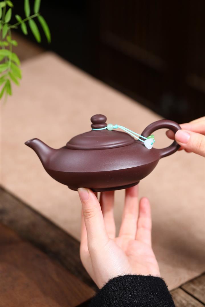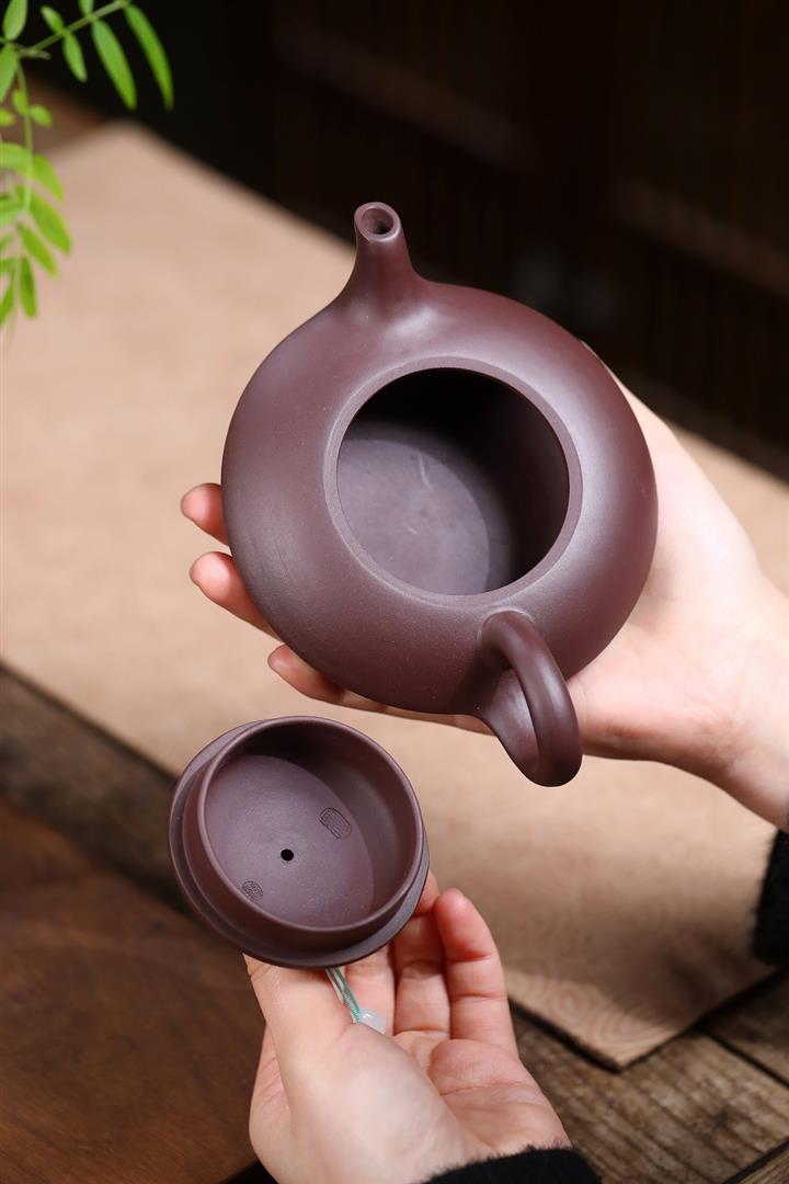 【作品介紹】此款壺形線條流暢,壺把,壺嘴,壺身壹氣呵成栩栩如生,是收藏把玩的好壺,泥料色澤古樸典雅,日久使用,漸露鋒芒,養成變化快,溫潤莊重,用其泡茶,使用的年代久,壺身就溫潤,泡出來的茶湯也就醇郁芳馨。