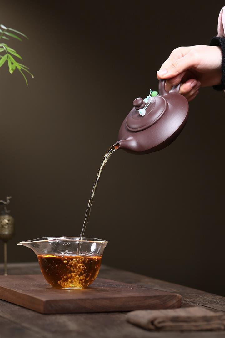 【泥料特點】砂土氣重,似淳實農民,日久使用,漸露鋒芒,養成變化,溫潤莊重。紫砂是壹種雙重氣孔結構的多孔性材質,氣孔微細,密度高。用紫砂壺沏茶,不失原味,且香不渙散,得茶之真香真味。紫砂使用越久,壺身色澤越發光亮照人,氣韻溫雅。紫砂壺長久使用器身會因撫摸擦拭,變得越發溫潤光澤。