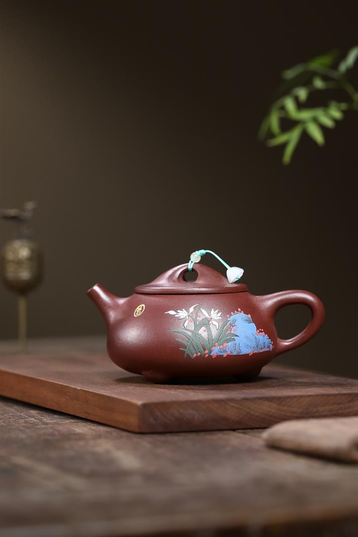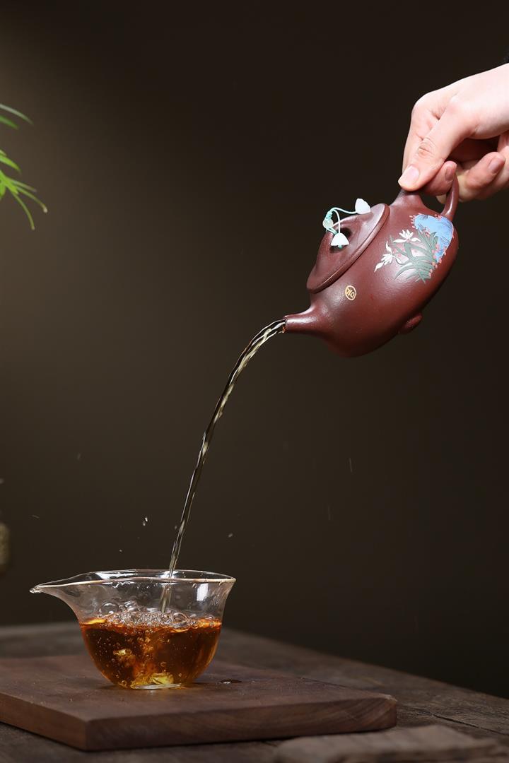 【泥料特點】砂土氣重,似淳實農民,日久使用,漸露鋒芒,養成變化,溫潤莊重。紫砂是壹種雙重氣孔結構的多孔性材質,氣孔微細,密度高。用紫砂壺沏茶,不失原味,且香不渙散,得茶之真香真味。紫砂使用越久,壺身色澤越發光亮照人,氣韻溫雅。紫砂壺長久使用器身會因撫摸擦拭,變得越發溫潤光澤。