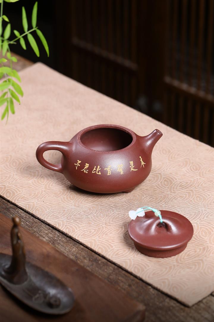 【作品介紹】此款壺形線條流暢,壺把,壺嘴,壺身壹氣呵成栩栩如生,是收藏把玩的好壺,泥料色澤古樸典雅,日久使用,漸露鋒芒,養成變化快,溫潤莊重,用其泡茶,使用的年代久,壺身就溫潤,泡出來的茶湯也就醇郁芳馨。