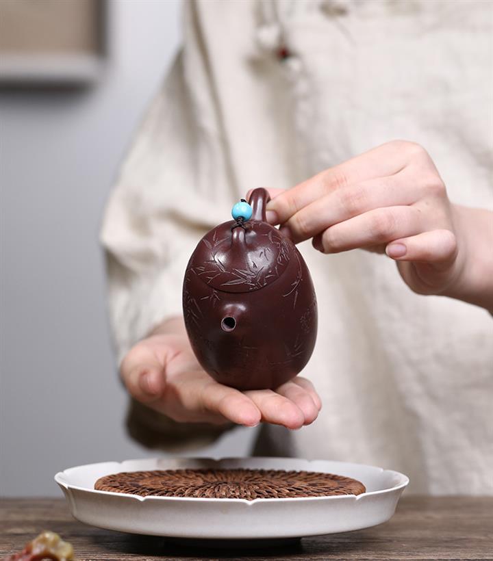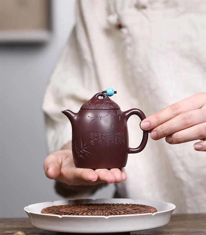 260cc原礦龍血砂刻竹秦權泡茶壺POT9957