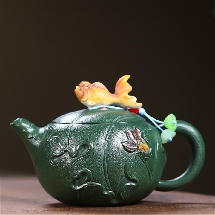 160cc原礦綠泥魚躍蓮心泡茶壺POT9965