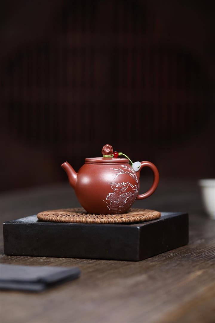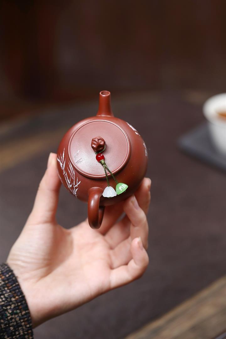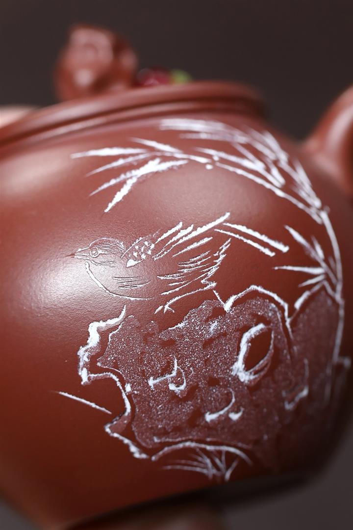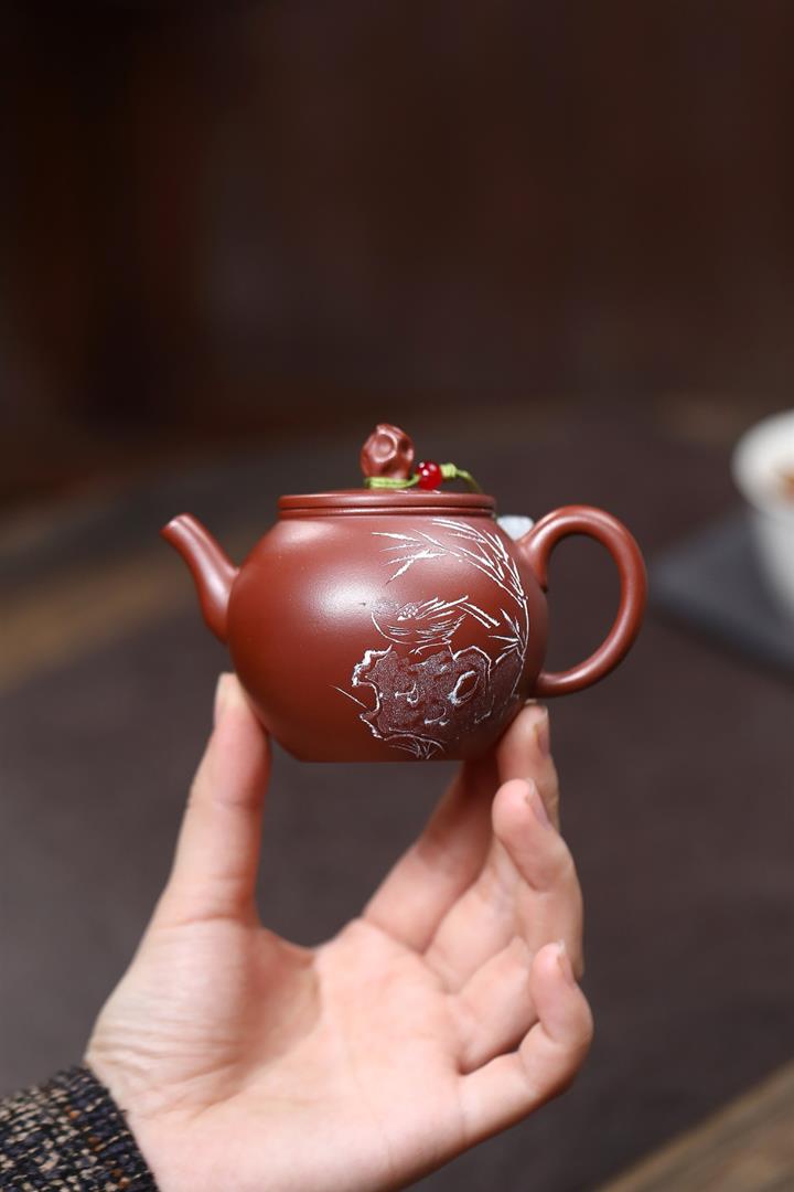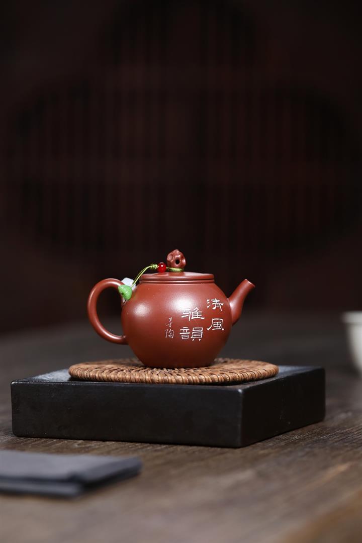 140cc原礦紅皮龍泥繪太湖石影泡茶壺POT9970