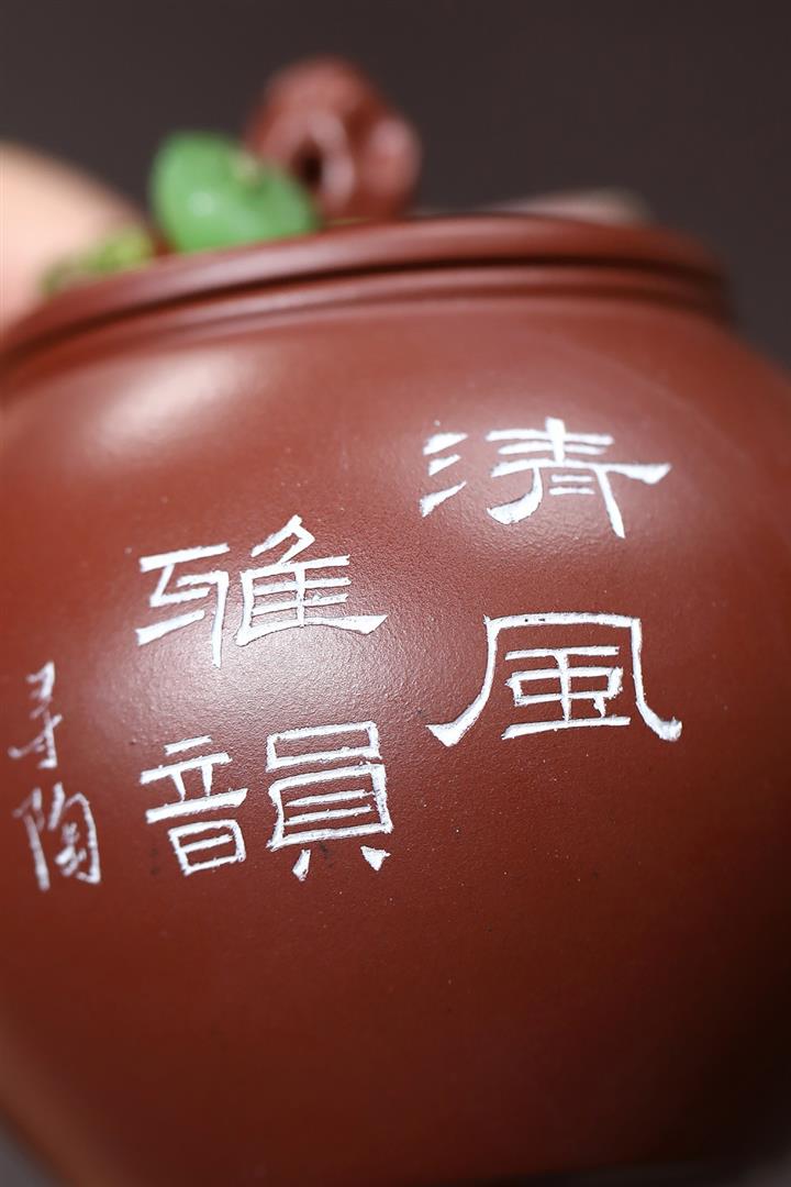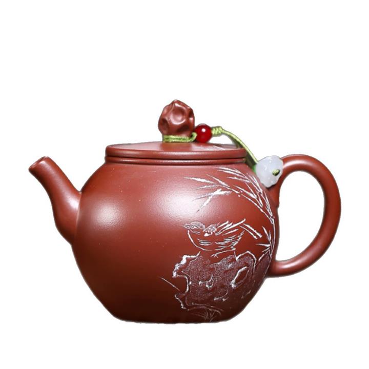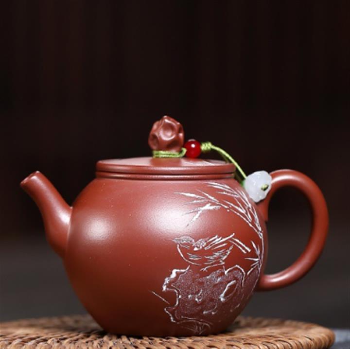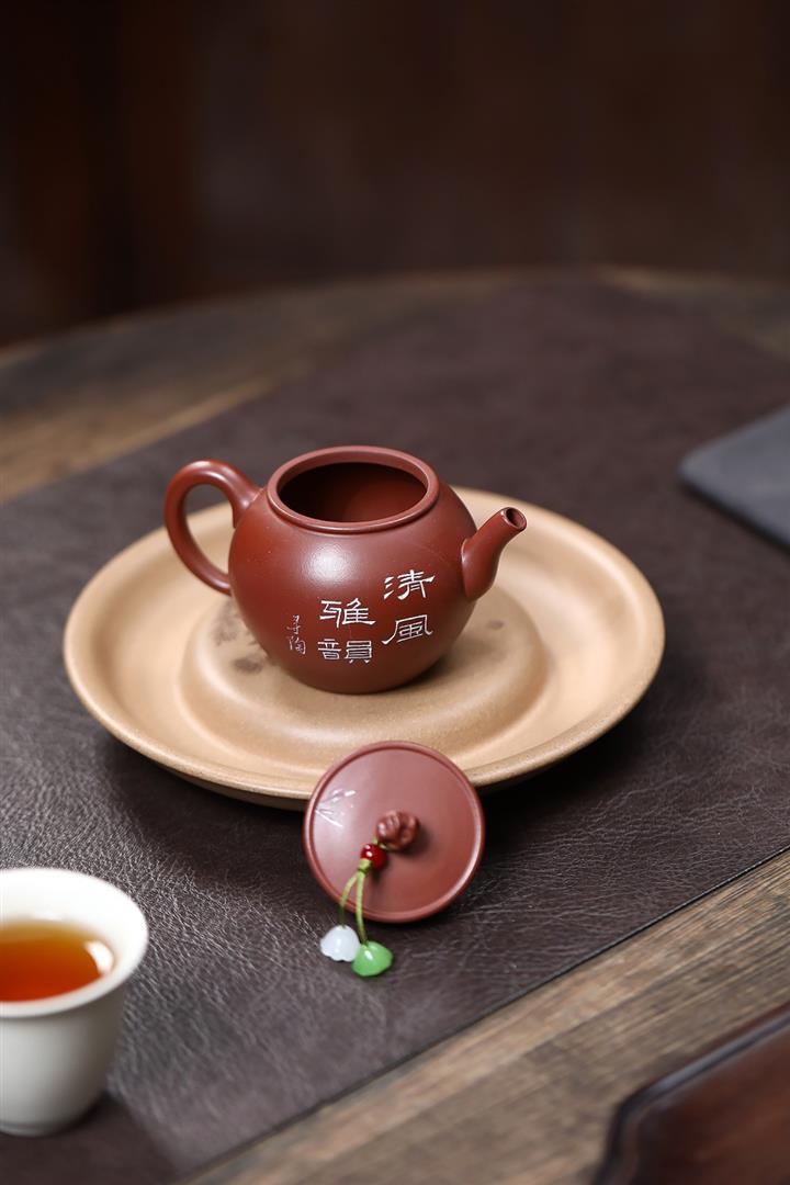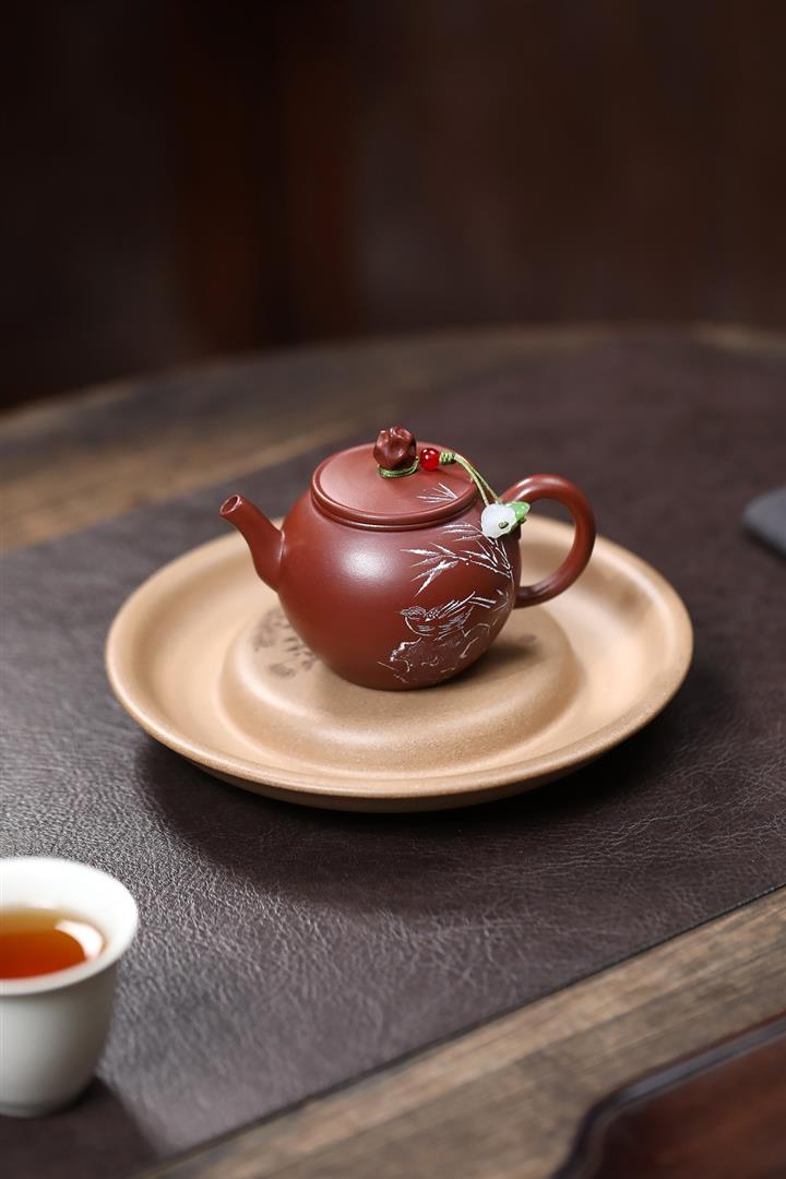 140cc原礦紅皮龍泥繪太湖石影泡茶壺POT9970
