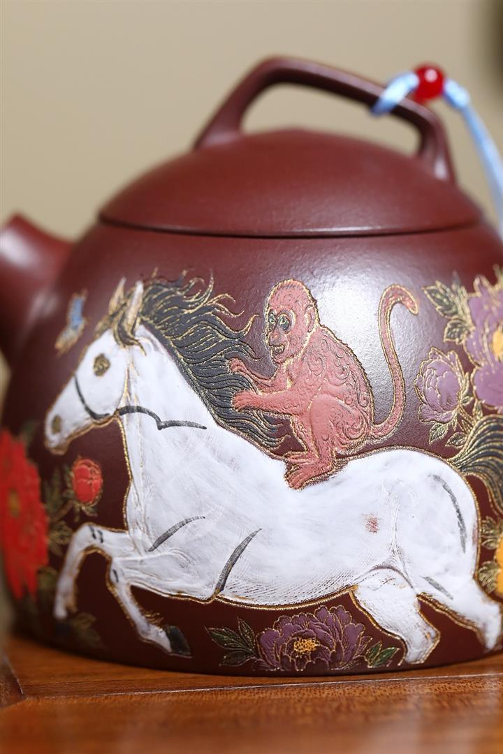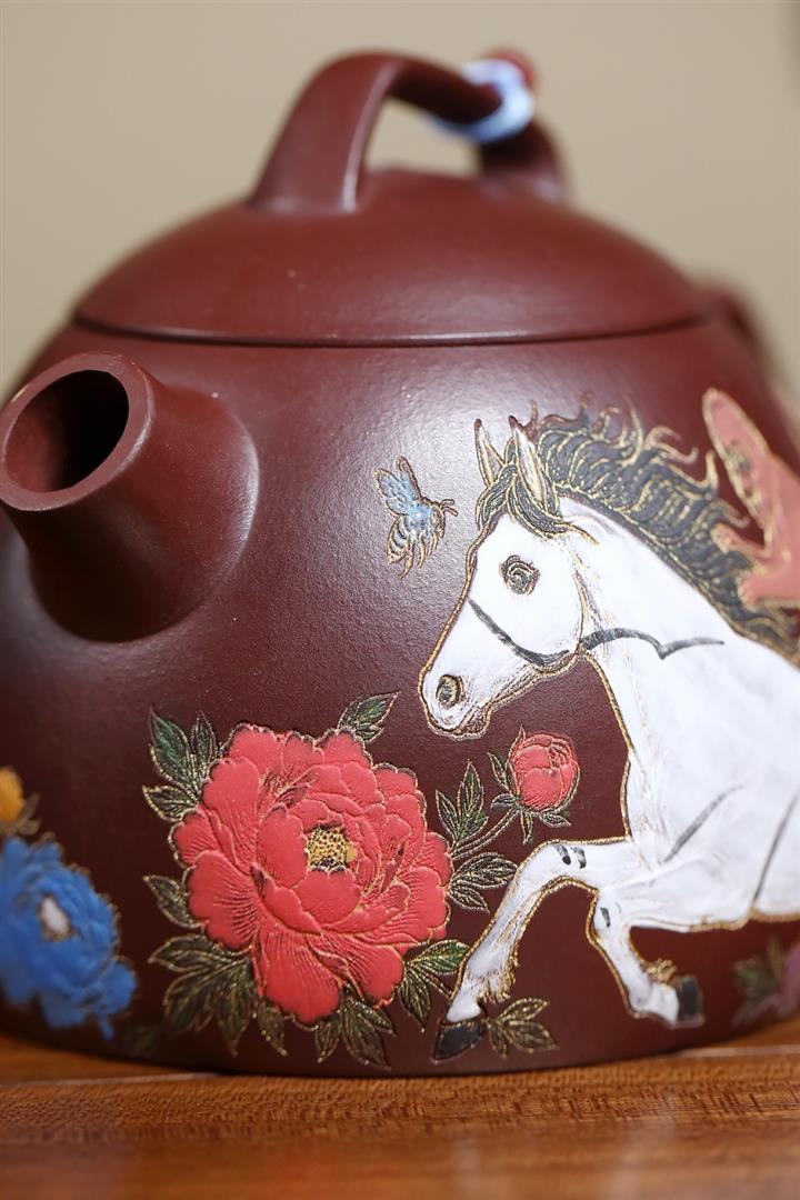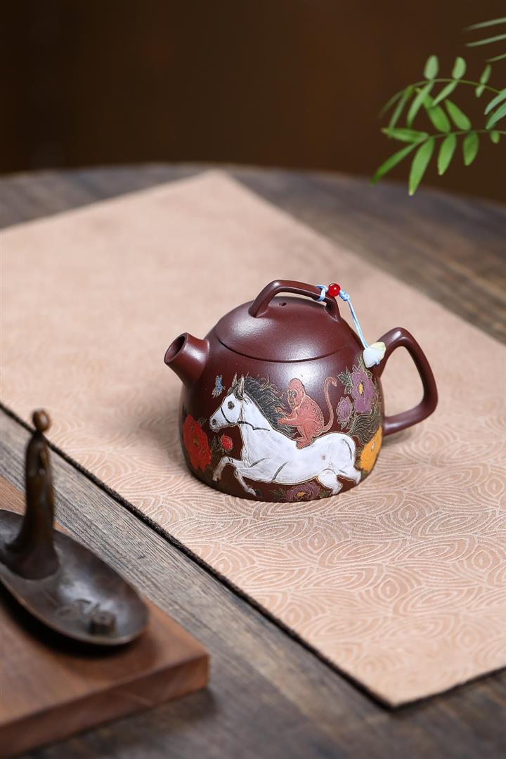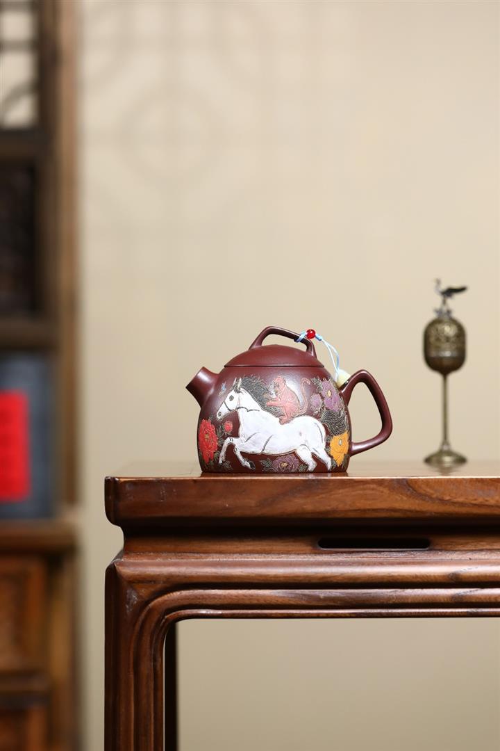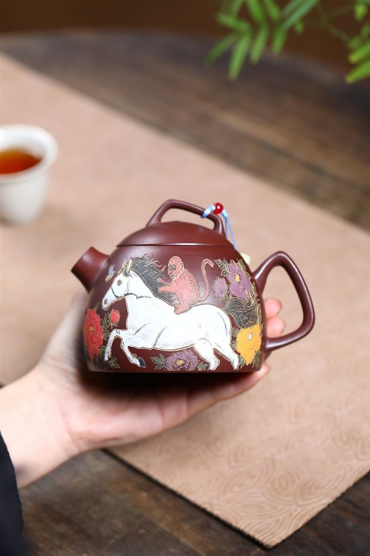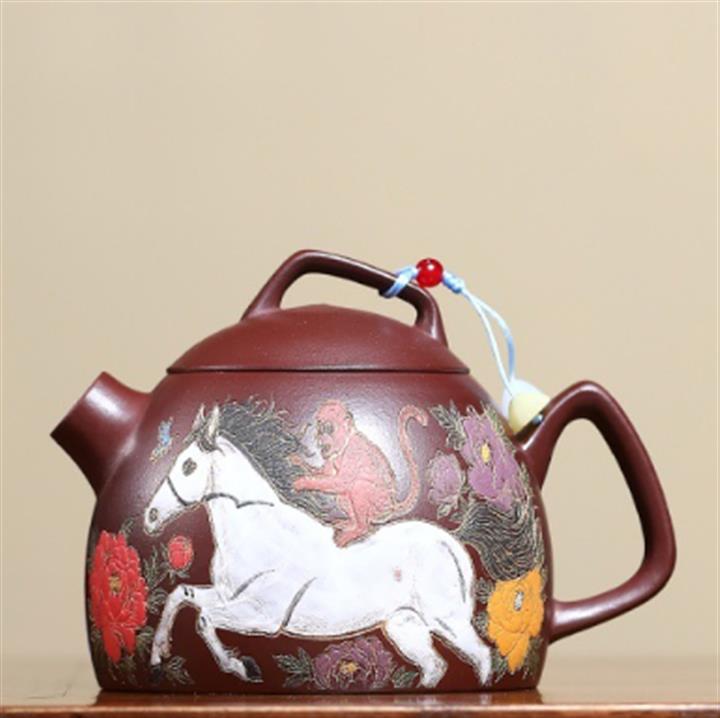 330cc原礦石紅泥花間馳馬秦權泡茶壺POT9971