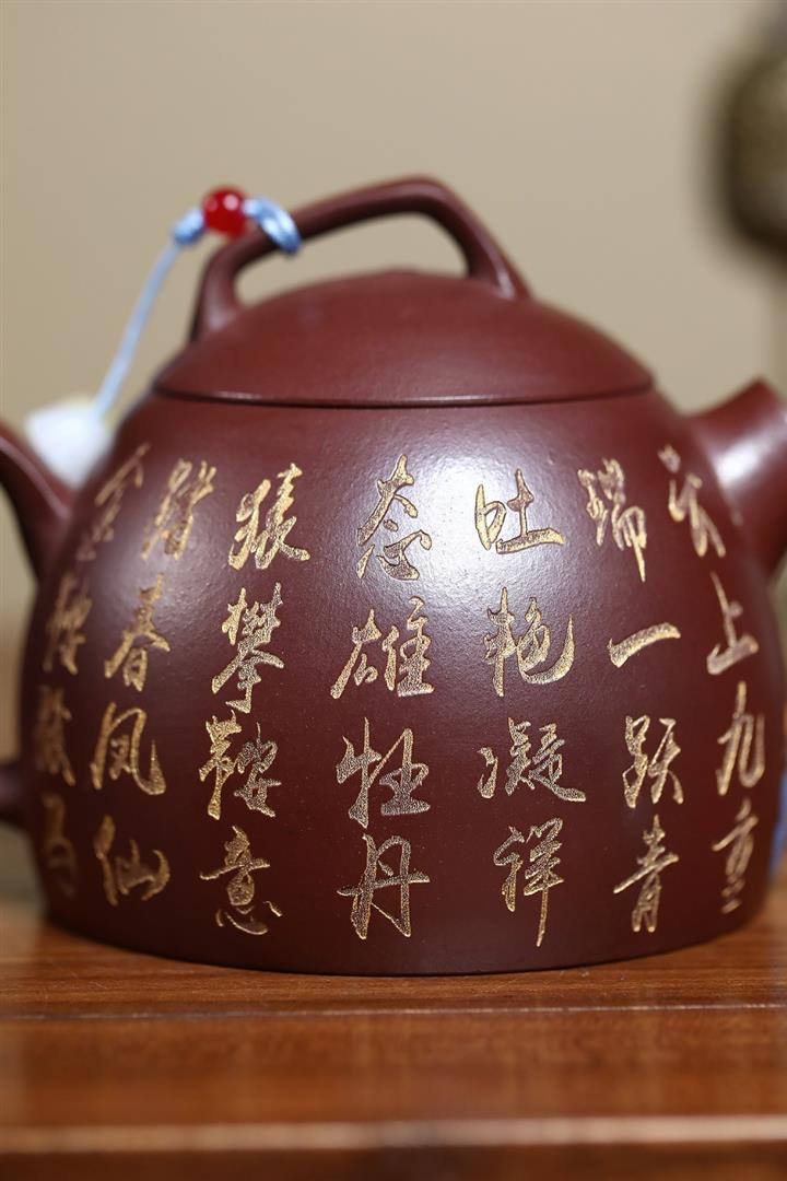 【泥料特點】砂土氣重,似淳實農民,日久使用,漸露鋒芒,養成變化,溫潤莊重。紫砂是壹種雙重氣孔結構的多孔性材質,氣孔微細,密度高。用紫砂壺沏茶,不失原味,且香不渙散,得茶之真香真味。紫砂使用越久,壺身色澤越發光亮照人,氣韻溫雅。紫砂壺長久使用器身會因撫摸擦拭,變得越發溫潤光澤。