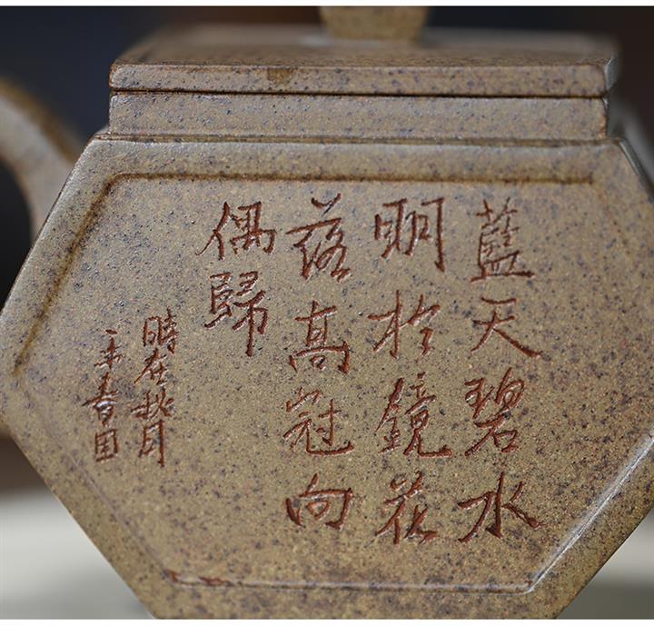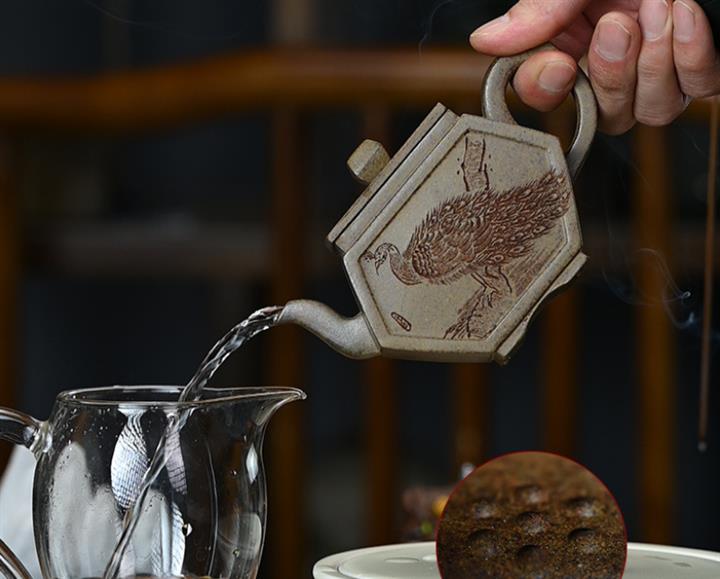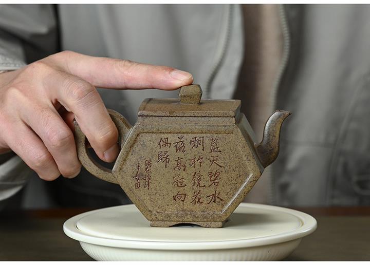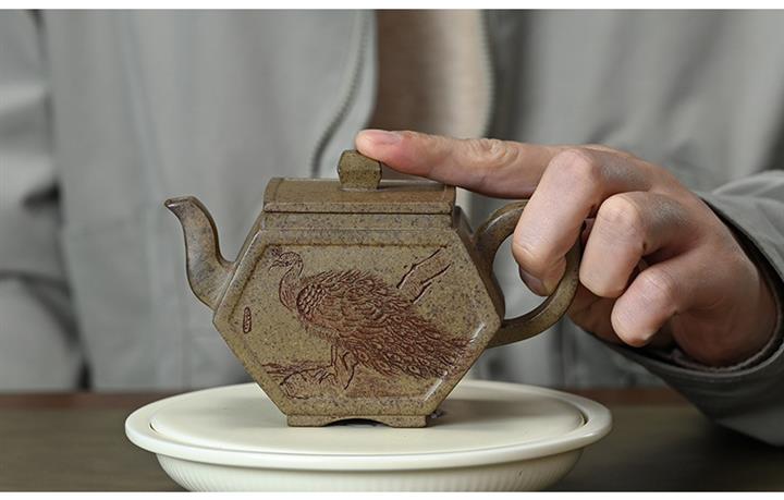 【泥料特點】砂土氣重,似淳實農民,日久使用,漸露鋒芒,養成變化,溫潤莊重。紫砂是壹種雙重氣孔結構的多孔性材質,氣孔微細,密度高。用紫砂壺沏茶,不失原味,且香不渙散,得茶之真香真味。紫砂使用越久,壺身色澤越發光亮照人,氣韻溫雅。紫砂壺長久使用器身會因撫摸擦拭,變得越發溫潤光澤。