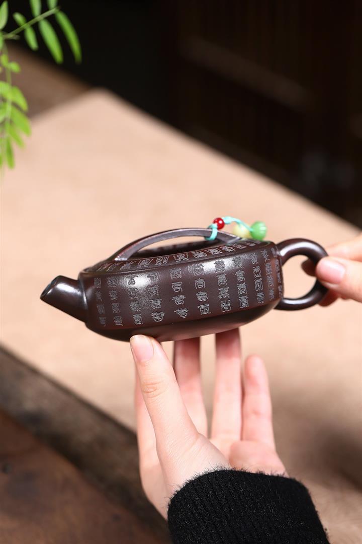 【作品介紹】此款壺形線條流暢,壺把,壺嘴,壺身壹氣呵成栩栩如生,是收藏把玩的好壺,泥料色澤古樸典雅,日久使用,漸露鋒芒,養成變化快,溫潤莊重,用其泡茶,使用的年代久,壺身就溫潤,泡出來的茶湯也就醇郁芳馨。