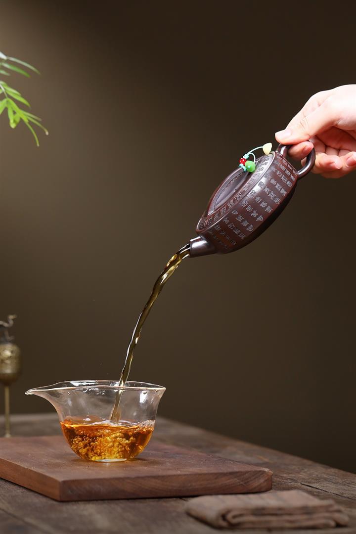 【泥料特點】砂土氣重,似淳實農民,日久使用,漸露鋒芒,養成變化,溫潤莊重。紫砂是壹種雙重氣孔結構的多孔性材質,氣孔微細,密度高。用紫砂壺沏茶,不失原味,且香不渙散,得茶之真香真味。紫砂使用越久,壺身色澤越發光亮照人,氣韻溫雅。紫砂壺長久使用器身會因撫摸擦拭,變得越發溫潤光澤。