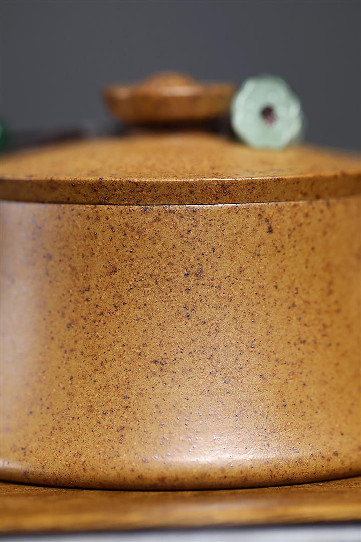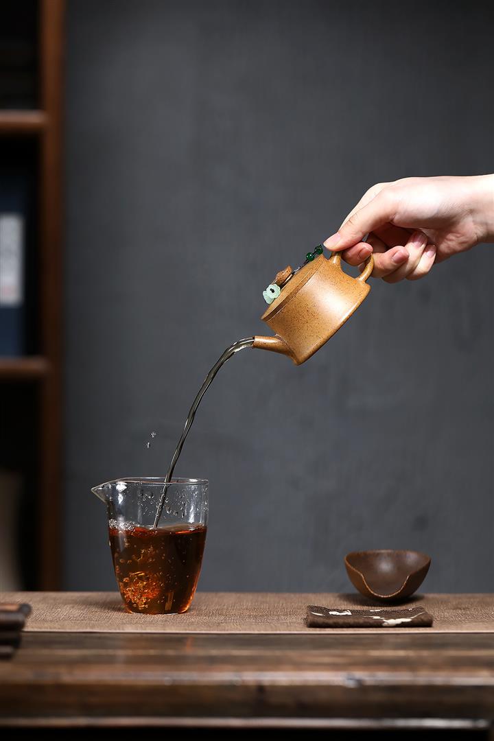 【泥料特點】砂土氣重,似淳實農民,日久使用,漸露鋒芒,養成變化,溫潤莊重。紫砂是壹種雙重氣孔結構的多孔性材質,氣孔微細,密度高。用紫砂壺沏茶,不失原味,且香不渙散,得茶之真香真味。紫砂使用越久,壺身色澤越發光亮照人,氣韻溫雅。紫砂壺長久使用器身會因撫摸擦拭,變得越發溫潤光澤。