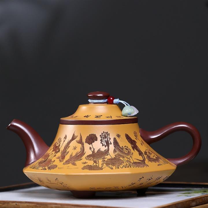 【作品介紹】此款壺形線條流暢,壺把,壺嘴,壺身壹氣呵成栩栩如生,是收藏把玩的好壺,泥料色澤古樸典雅,日久使用,漸露鋒芒,養成變化快,溫潤莊重,用其泡茶,使用的年代久,壺身就溫潤,泡出來的茶湯也就醇郁芳馨。