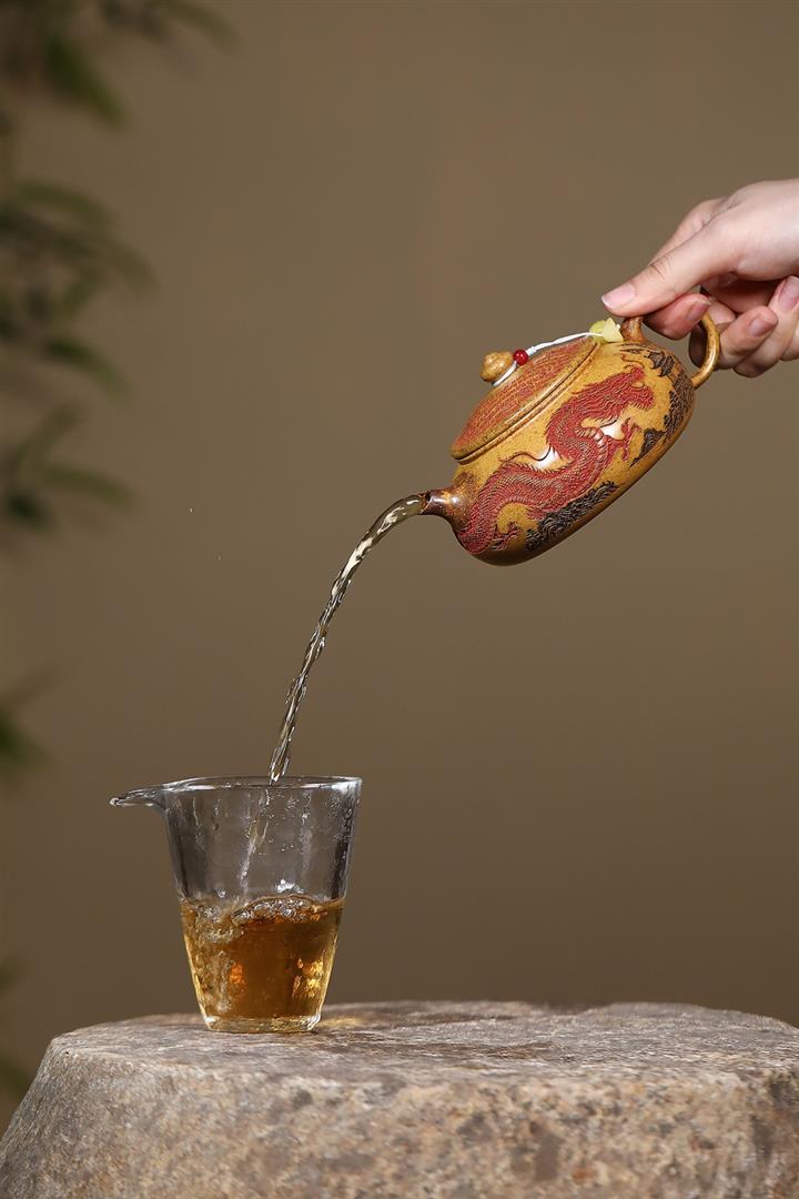 【泥料特點】砂土氣重,似淳實農民,日久使用,漸露鋒芒,養成變化,溫潤莊重。紫砂是壹種雙重氣孔結構的多孔性材質,氣孔微細,密度高。用紫砂壺沏茶,不失原味,且香不渙散,得茶之真香真味。紫砂使用越久,壺身色澤越發光亮照人,氣韻溫雅。紫砂壺長久使用器身會因撫摸擦拭,變得越發溫潤光澤。