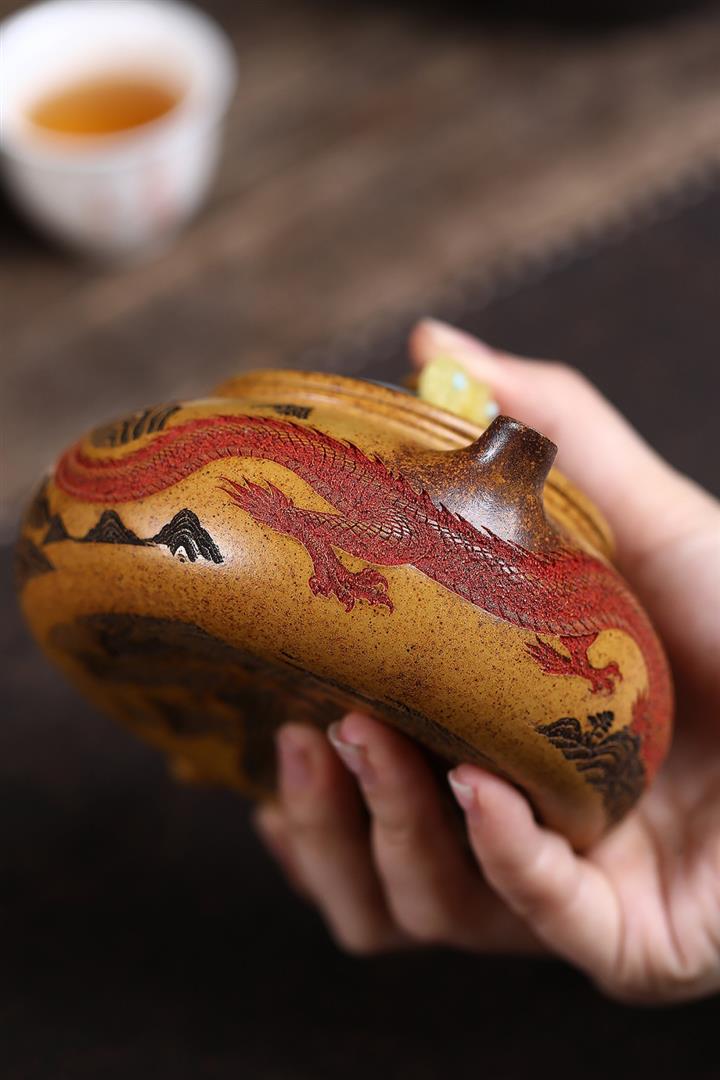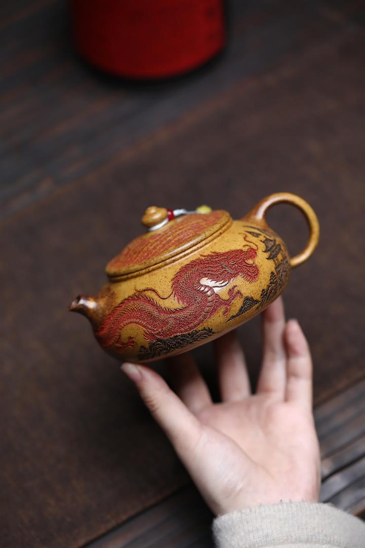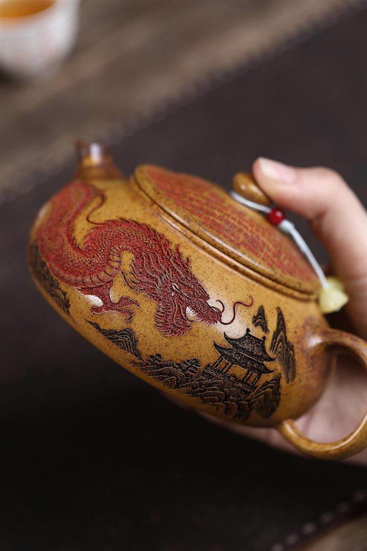 320cc龍骨金砂柴燒龍紋寒江茶壺POT9985