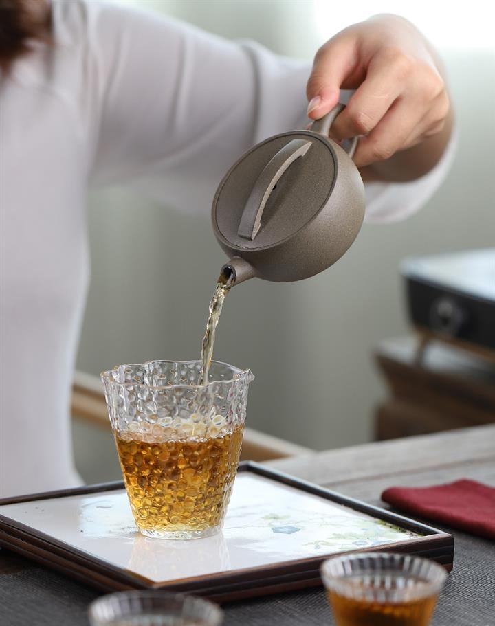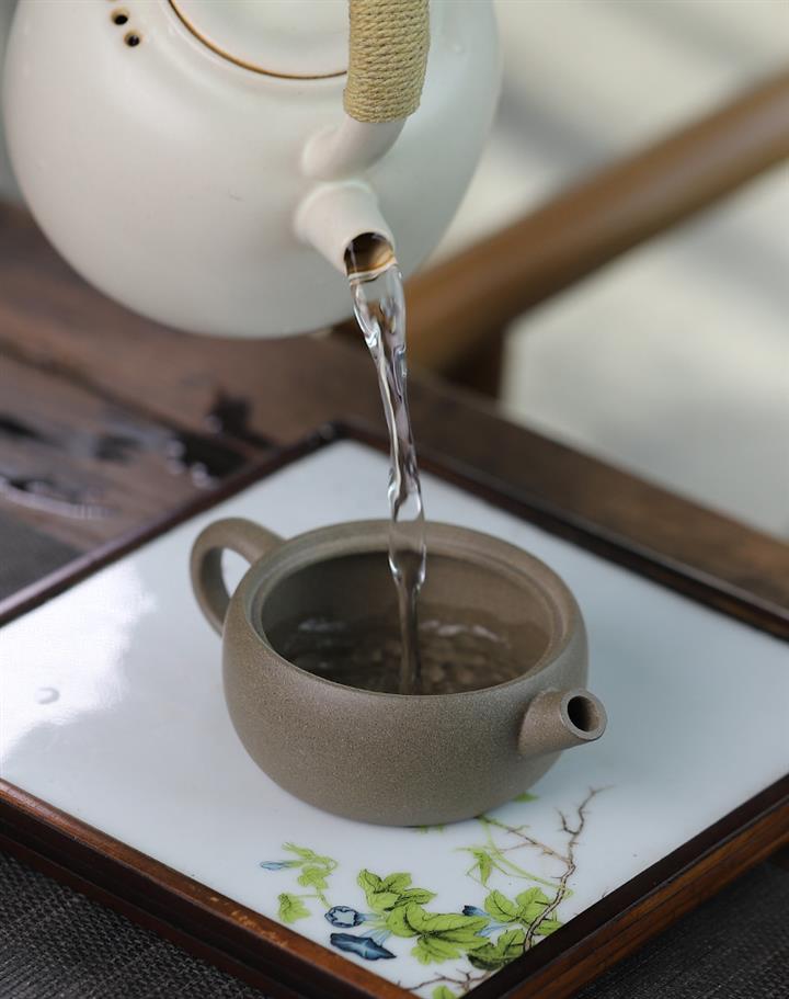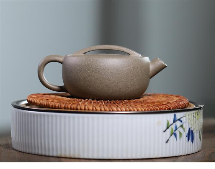 【泥料特點】砂土氣重,似淳實農民,日久使用,漸露鋒芒,養成變化,溫潤莊重。紫砂是壹種雙重氣孔結構的多孔性材質,氣孔微細,密度高。用紫砂壺沏茶,不失原味,且香不渙散,得茶之真香真味。紫砂使用越久,壺身色澤越發光亮照人,氣韻溫雅。紫砂壺長久使用器身會因撫摸擦拭,變得越發溫潤光澤。