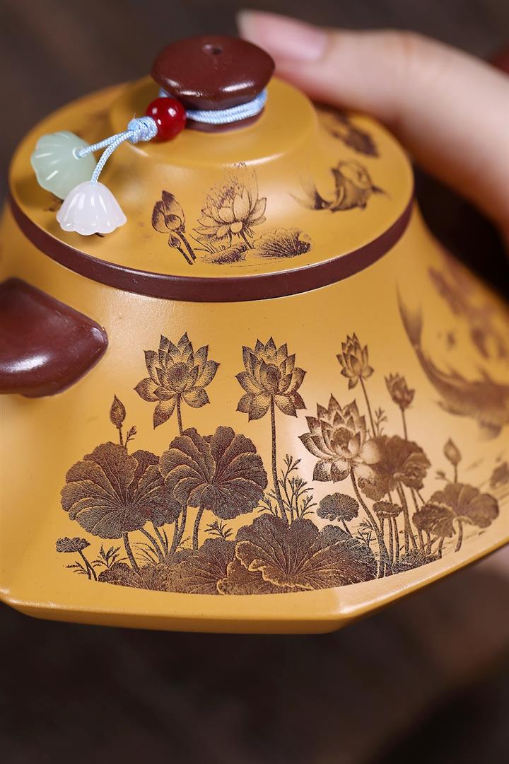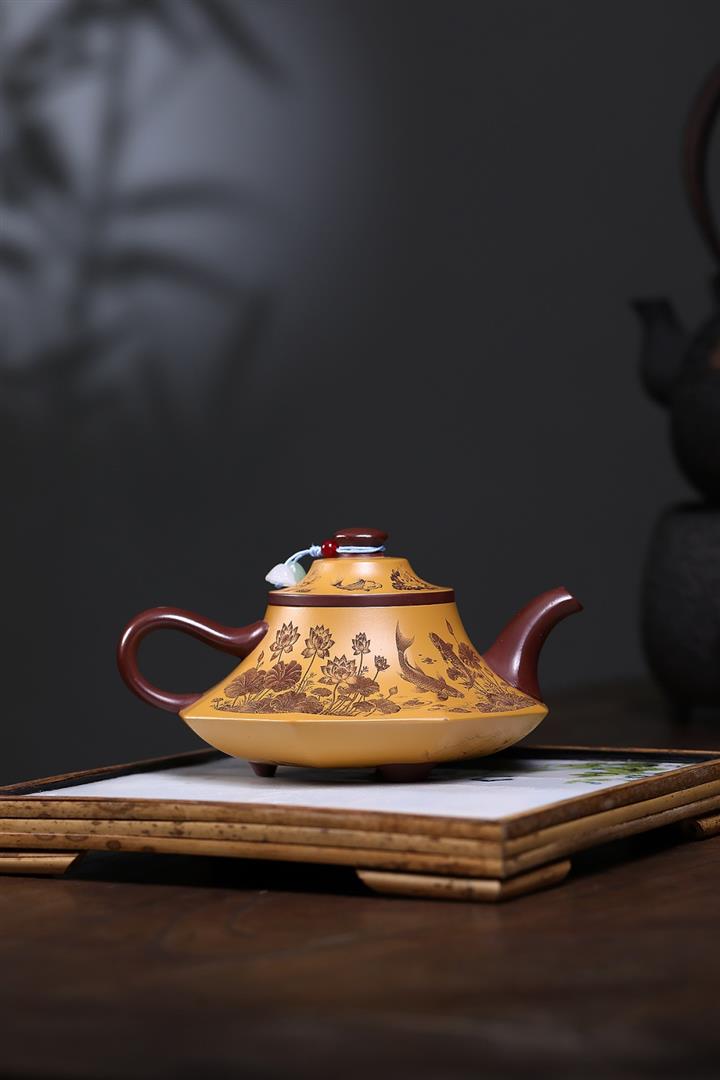 140cc原礦紫泥秋荷藏韻花泡茶壺POT9992