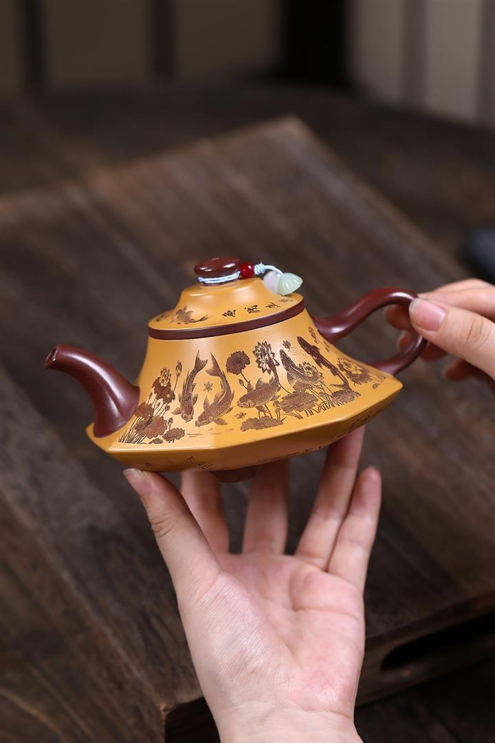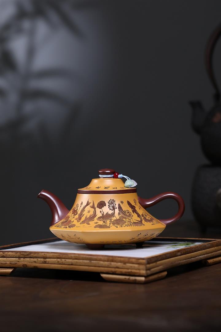 【作品介紹】此款壺形線條流暢,壺把,壺嘴,壺身壹氣呵成栩栩如生,是收藏把玩的好壺,泥料色澤古樸典雅,日久使用,漸露鋒芒,養成變化快,溫潤莊重,用其泡茶,使用的年代久,壺身就溫潤,泡出來的茶湯也就醇郁芳馨。