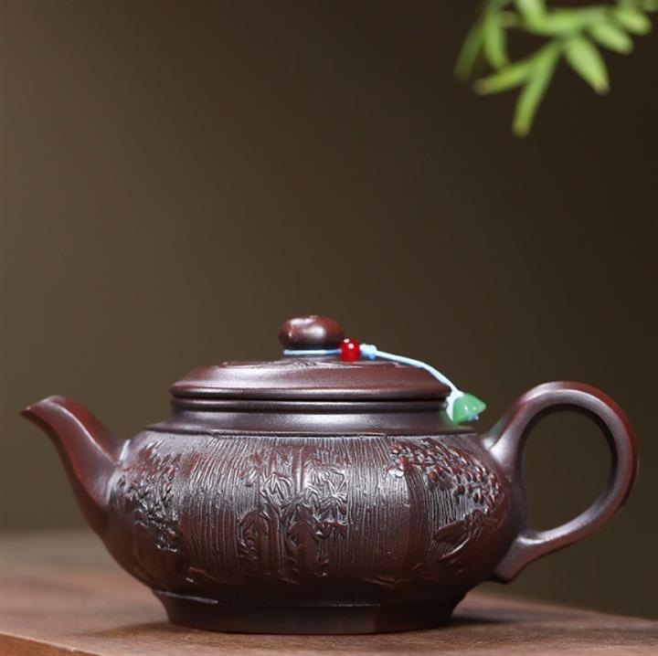 480cc原礦石紅泥百福竹節泡茶壺POT10002