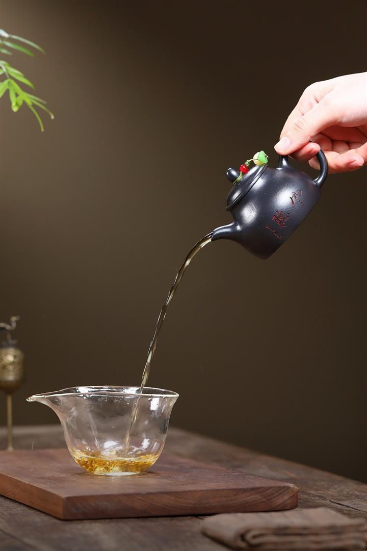 【泥料特點】砂土氣重,似淳實農民,日久使用,漸露鋒芒,養成變化,溫潤莊重。紫砂是壹種雙重氣孔結構的多孔性材質,氣孔微細,密度高。用紫砂壺沏茶,不失原味,且香不渙散,得茶之真香真味。紫砂使用越久,壺身色澤越發光亮照人,氣韻溫雅。紫砂壺長久使用器身會因撫摸擦拭,變得越發溫潤光澤。