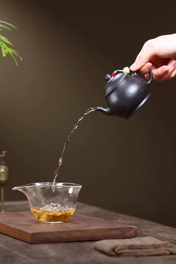 【泥料特點】砂土氣重,似淳實農民,日久使用,漸露鋒芒,養成變化,溫潤莊重。紫砂是壹種雙重氣孔結構的多孔性材質,氣孔微細,密度高。用紫砂壺沏茶,不失原味,且香不渙散,得茶之真香真味。紫砂使用越久,壺身色澤越發光亮照人,氣韻溫雅。紫砂壺長久使用器身會因撫摸擦拭,變得越發溫潤光澤。