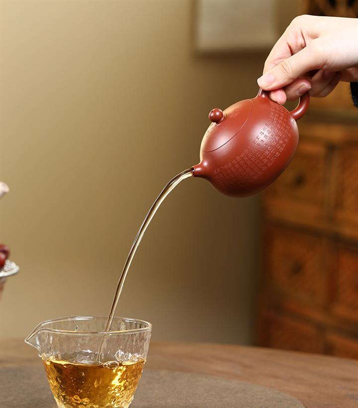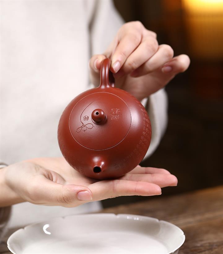 【泥料特點】砂土氣重,似淳實農民,日久使用,漸露鋒芒,養成變化,溫潤莊重。紫砂是壹種雙重氣孔結構的多孔性材質,氣孔微細,密度高。用紫砂壺沏茶,不失原味,且香不渙散,得茶之真香真味。紫砂使用越久,壺身色澤越發光亮照人,氣韻溫雅。紫砂壺長久使用器身會因撫摸擦拭,變得越發溫潤光澤。