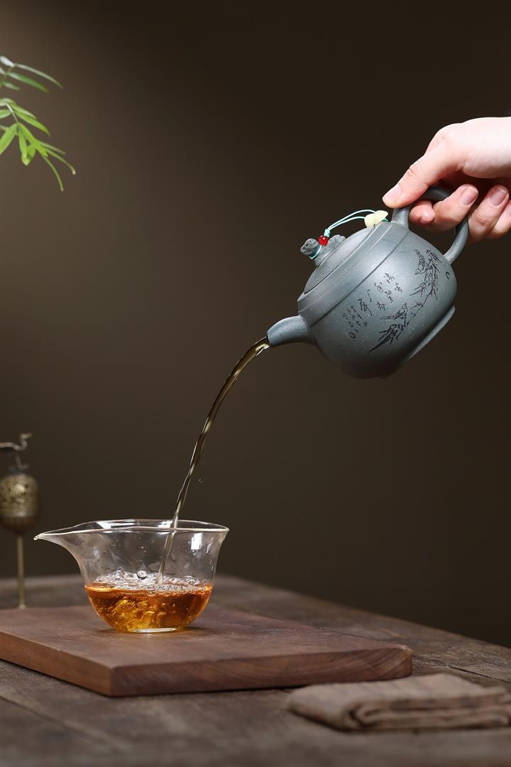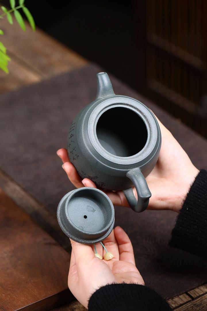 【泥料特點】砂土氣重,似淳實農民,日久使用,漸露鋒芒,養成變化,溫潤莊重。紫砂是壹種雙重氣孔結構的多孔性材質,氣孔微細,密度高。用紫砂壺沏茶,不失原味,且香不渙散,得茶之真香真味。紫砂使用越久,壺身色澤越發光亮照人,氣韻溫雅。紫砂壺長久使用器身會因撫摸擦拭,變得越發溫潤光澤。