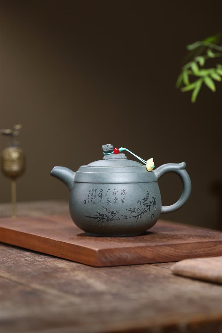 【作品介紹】此款壺形線條流暢,壺把,壺嘴,壺身壹氣呵成栩栩如生,是收藏把玩的好壺,泥料色澤古樸典雅,日久使用,漸露鋒芒,養成變化快,溫潤莊重,用其泡茶,使用的年代久,壺身就溫潤,泡出來的茶湯也就醇郁芳馨。