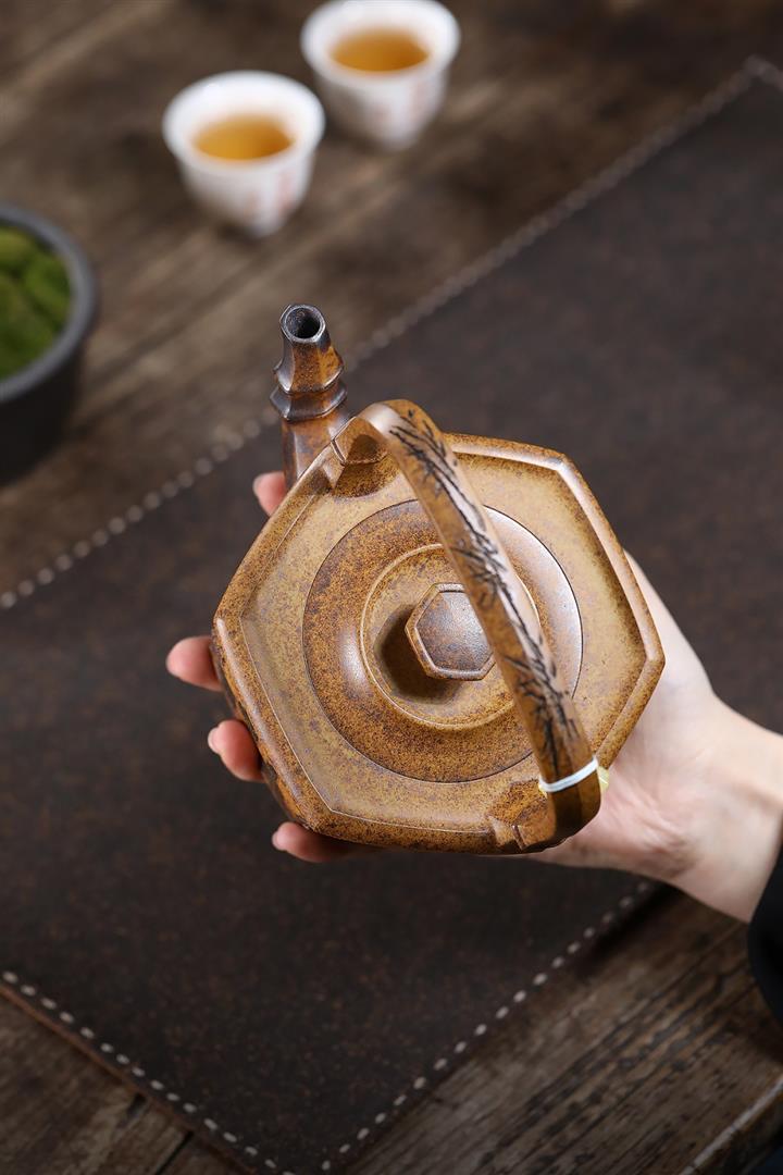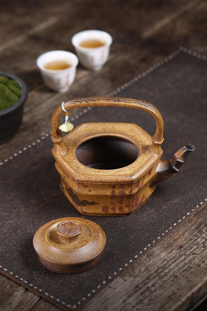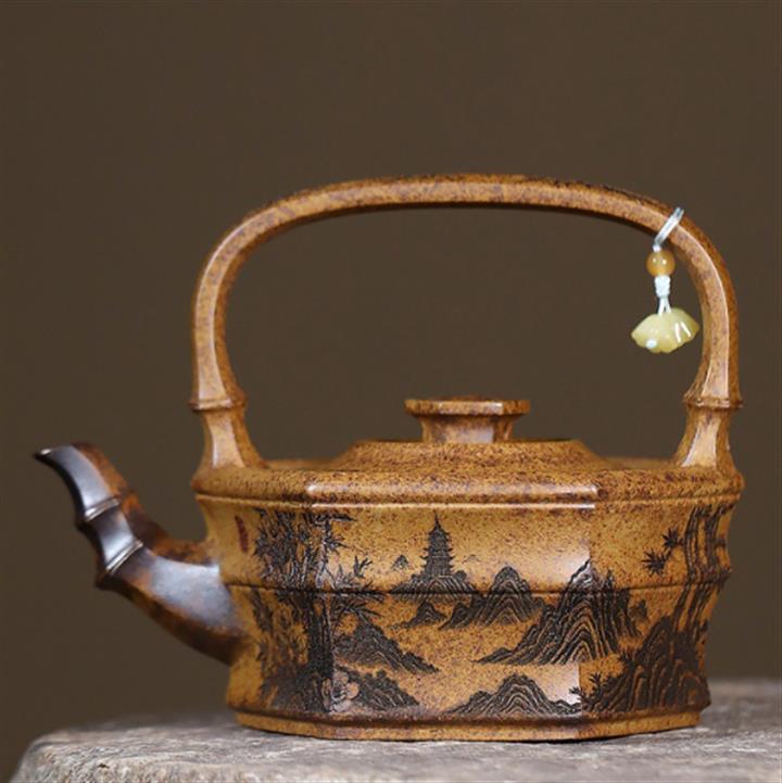 350cc原礦龍骨金砂山水提梁茶壺POT10012