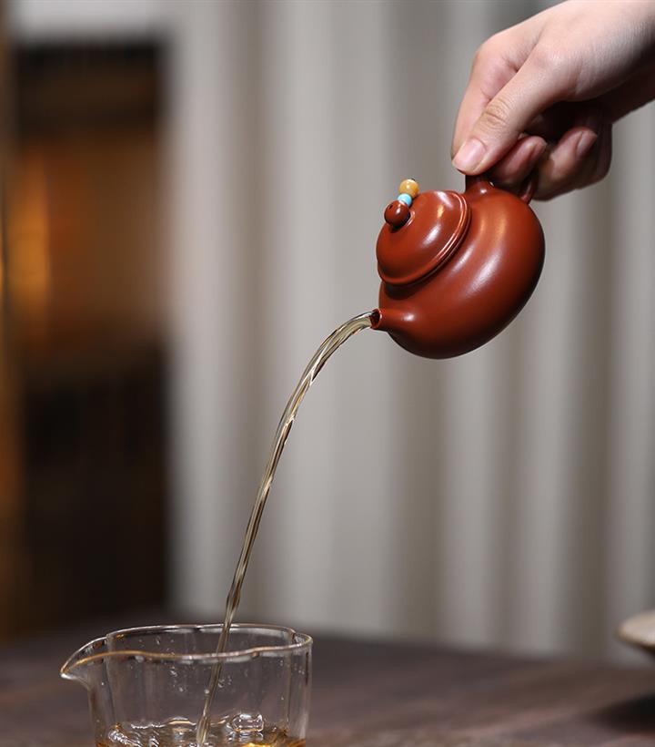 【泥料特點】砂土氣重,似淳實農民,日久使用,漸露鋒芒,養成變化,溫潤莊重。紫砂是壹種雙重氣孔結構的多孔性材質,氣孔微細,密度高。用紫砂壺沏茶,不失原味,且香不渙散,得茶之真香真味。紫砂使用越久,壺身色澤越發光亮照人,氣韻溫雅。紫砂壺長久使用器身會因撫摸擦拭,變得越發溫潤光澤。