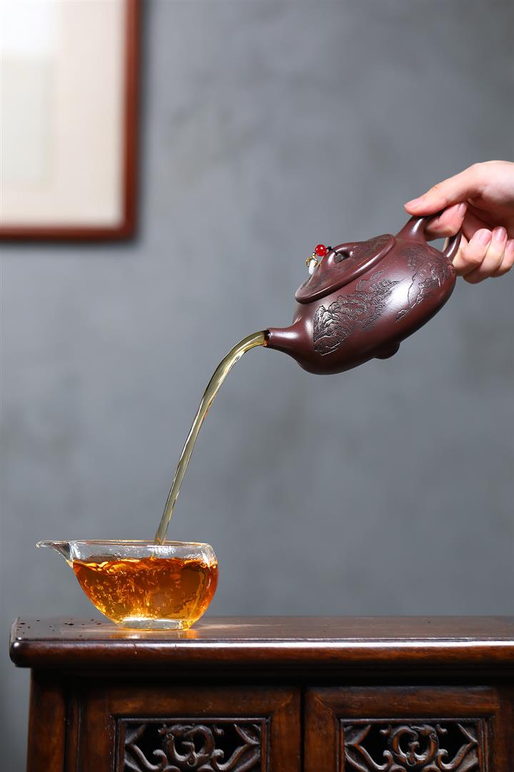 【泥料特點】砂土氣重,似淳實農民,日久使用,漸露鋒芒,養成變化,溫潤莊重。紫砂是壹種雙重氣孔結構的多孔性材質,氣孔微細,密度高。用紫砂壺沏茶,不失原味,且香不渙散,得茶之真香真味。紫砂使用越久,壺身色澤越發光亮照人,氣韻溫雅。紫砂壺長久使用器身會因撫摸擦拭,變得越發溫潤光澤。