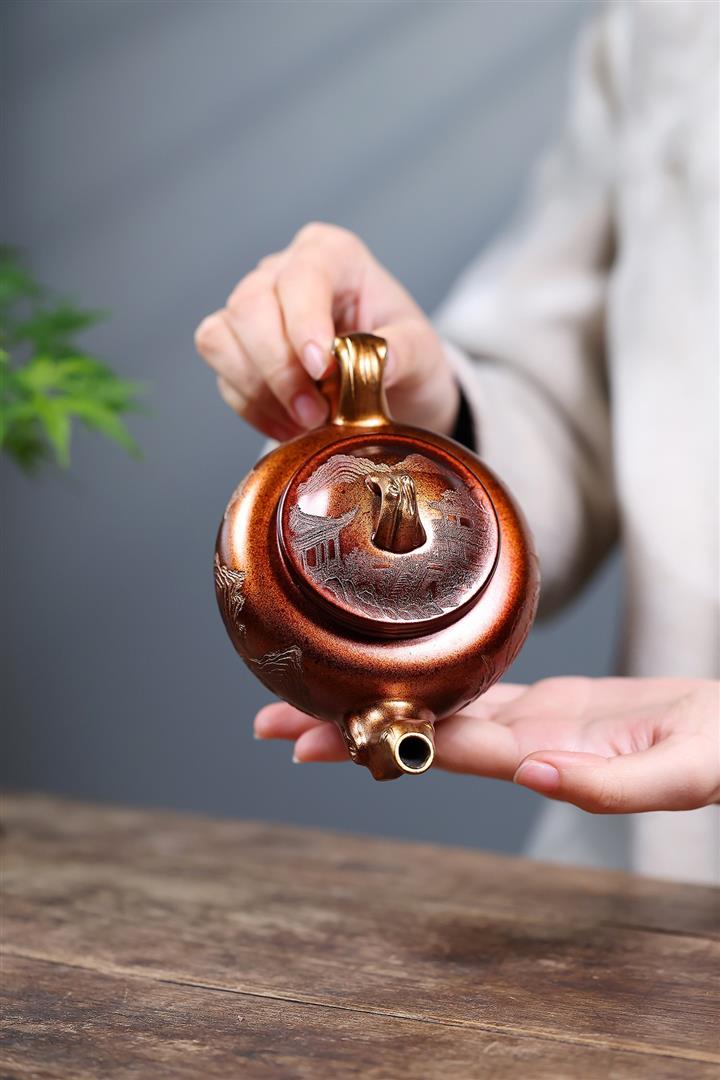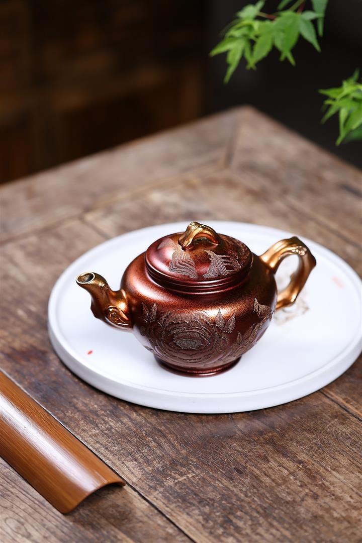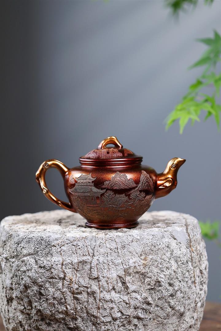 280cc原礦朱泥描金掇只泡茶壺POT10036
