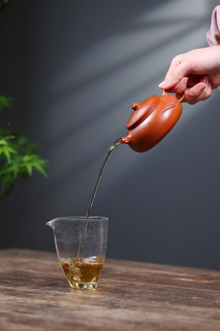 【泥料特點】砂土氣重,似淳實農民,日久使用,漸露鋒芒,養成變化,溫潤莊重。紫砂是壹種雙重氣孔結構的多孔性材質,氣孔微細,密度高。用紫砂壺沏茶,不失原味,且香不渙散,得茶之真香真味。紫砂使用越久,壺身色澤越發光亮照人,氣韻溫雅。紫砂壺長久使用器身會因撫摸擦拭,變得越發溫潤光澤。