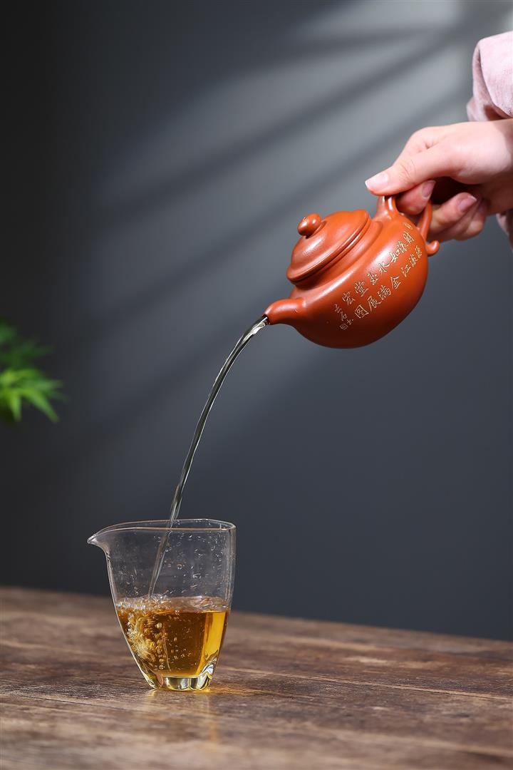 【泥料特點】砂土氣重,似淳實農民,日久使用,漸露鋒芒,養成變化,溫潤莊重。紫砂是壹種雙重氣孔結構的多孔性材質,氣孔微細,密度高。用紫砂壺沏茶,不失原味,且香不渙散,得茶之真香真味。紫砂使用越久,壺身色澤越發光亮照人,氣韻溫雅。紫砂壺長久使用器身會因撫摸擦拭,變得越發溫潤光澤。