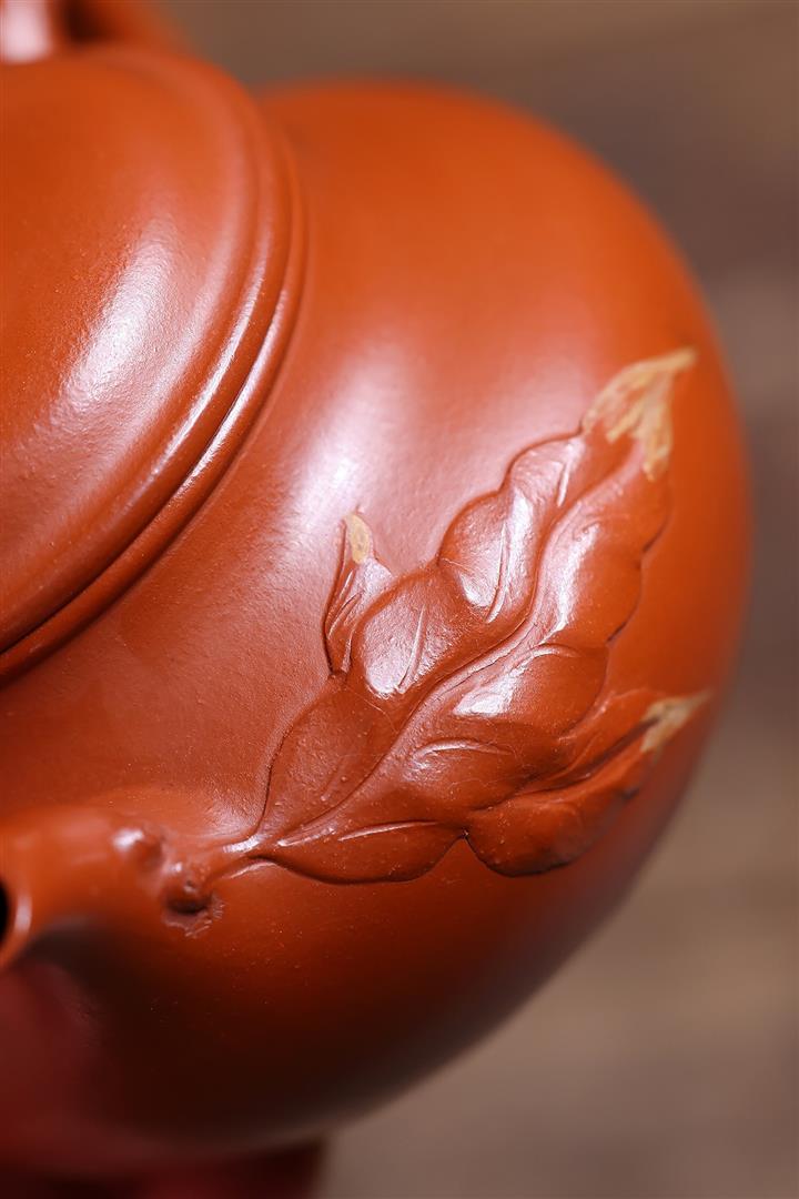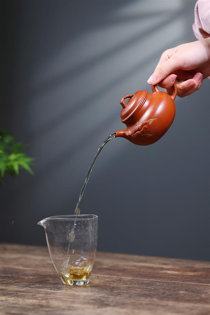 【泥料特點】砂土氣重,似淳實農民,日久使用,漸露鋒芒,養成變化,溫潤莊重。紫砂是壹種雙重氣孔結構的多孔性材質,氣孔微細,密度高。用紫砂壺沏茶,不失原味,且香不渙散,得茶之真香真味。紫砂使用越久,壺身色澤越發光亮照人,氣韻溫雅。紫砂壺長久使用器身會因撫摸擦拭,變得越發溫潤光澤。