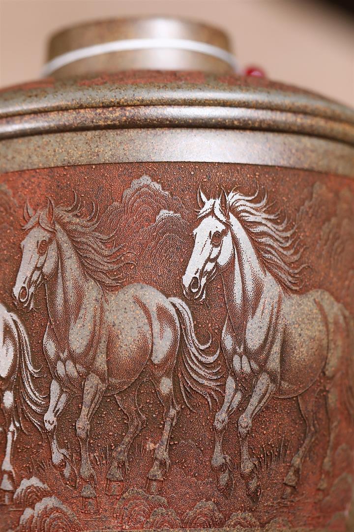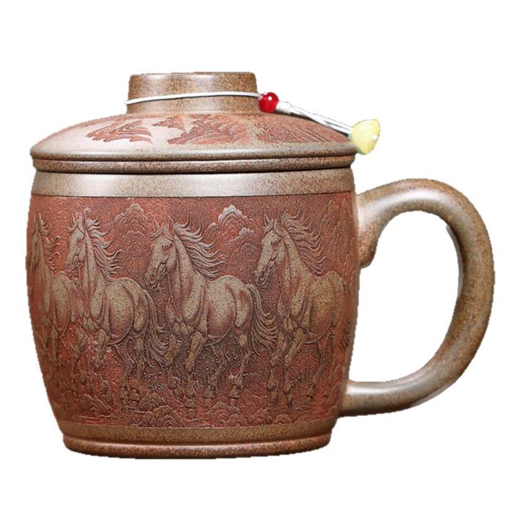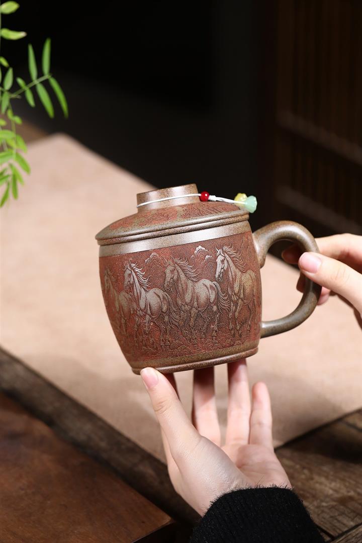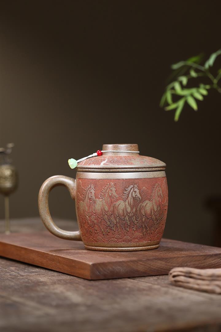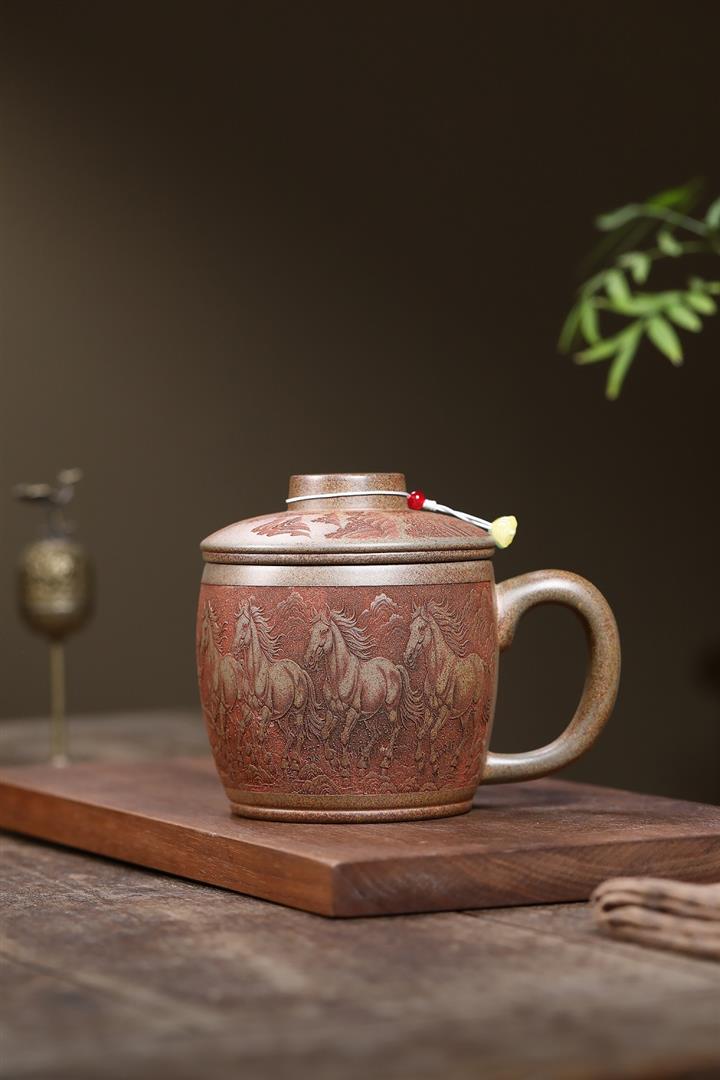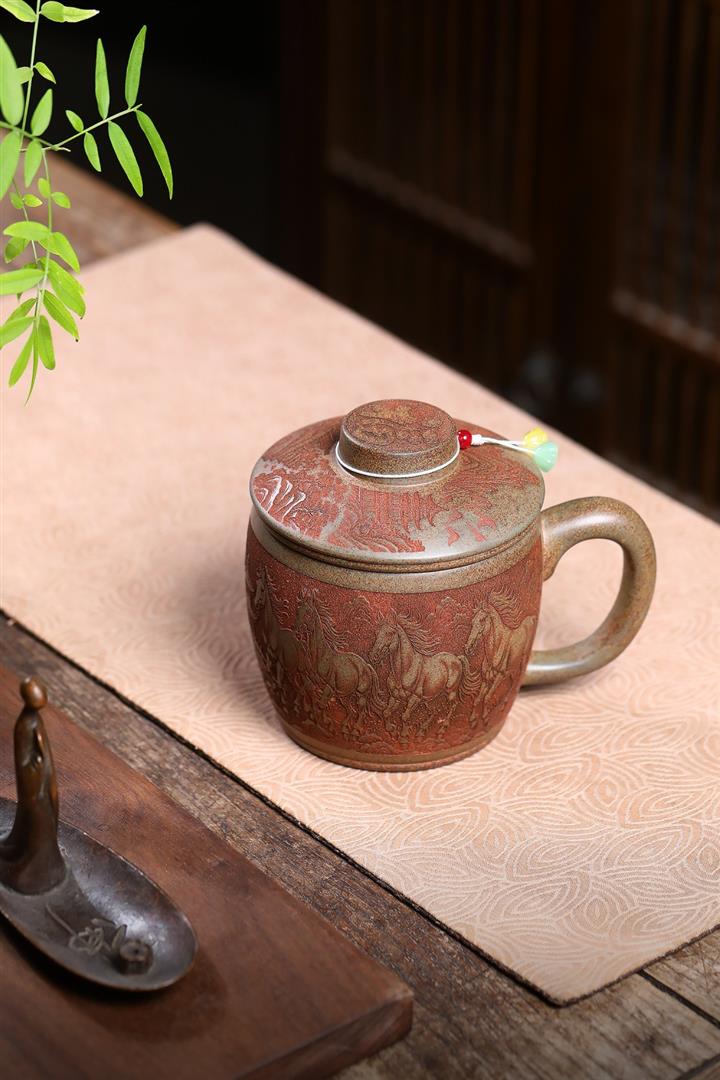 440cc原礦沈香泥柴燒八駿圖蓋杯茶杯POT10064