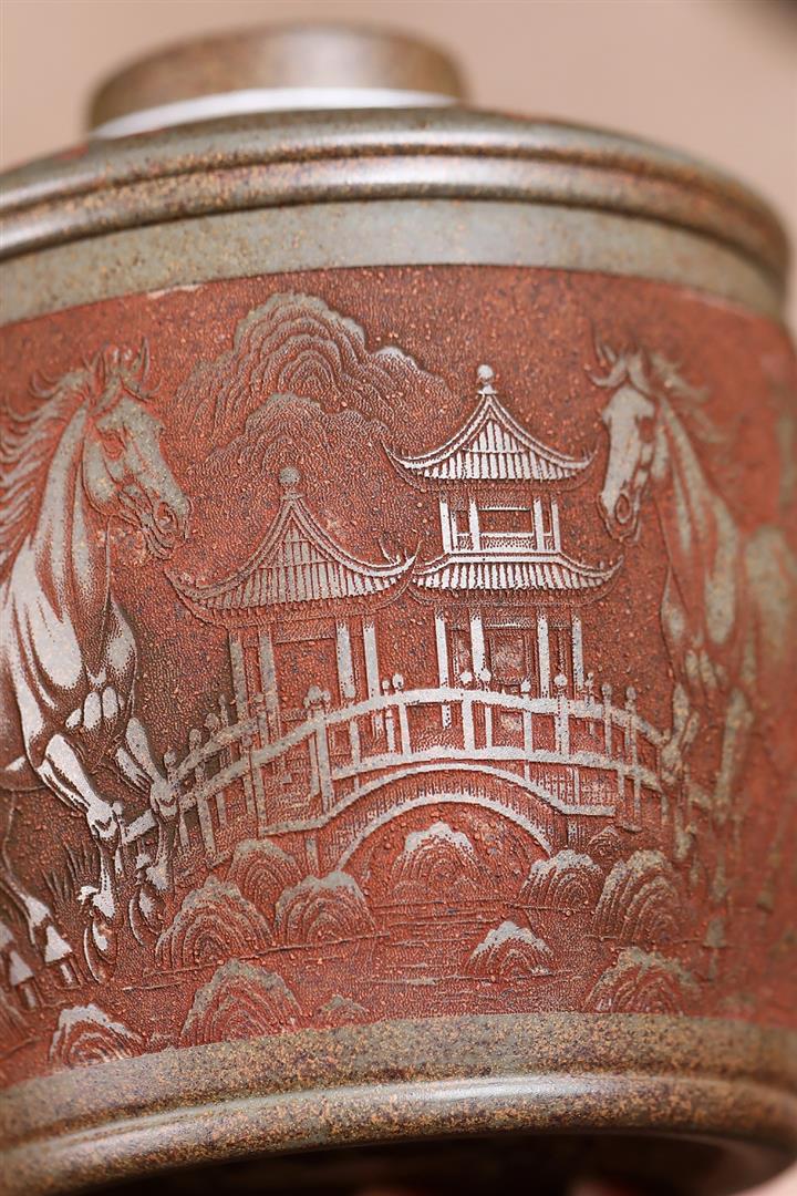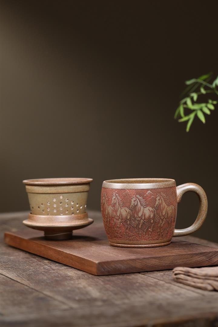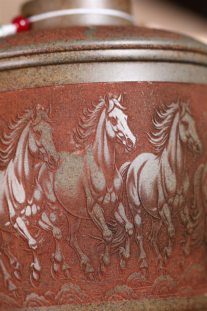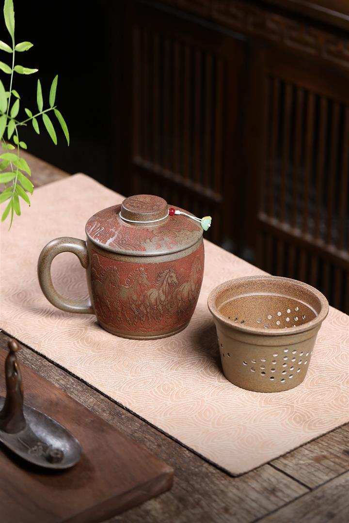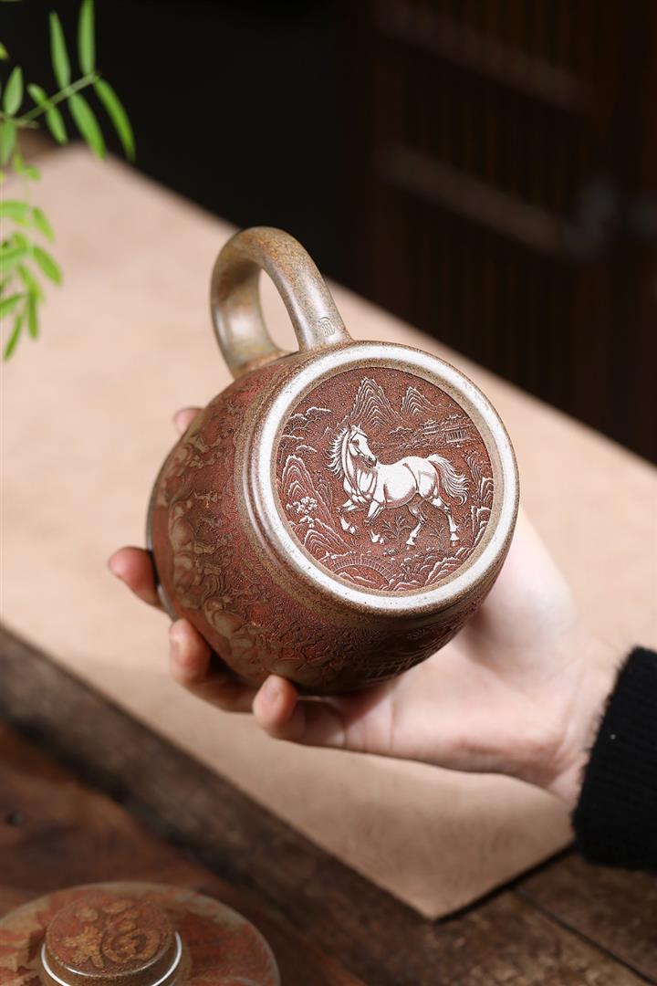 440cc原礦沈香泥柴燒八駿圖蓋杯茶杯POT10064