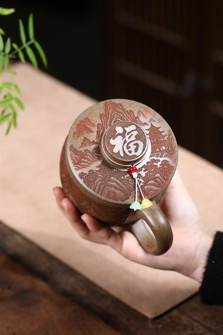 360cc原礦紫泥喜上眉梢蓋杯茶杯POT10066