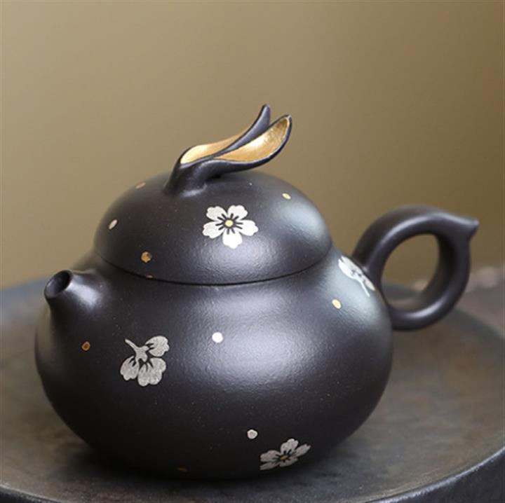 140cc原礦黑泥描金描銀兔子泡茶壺POT10075