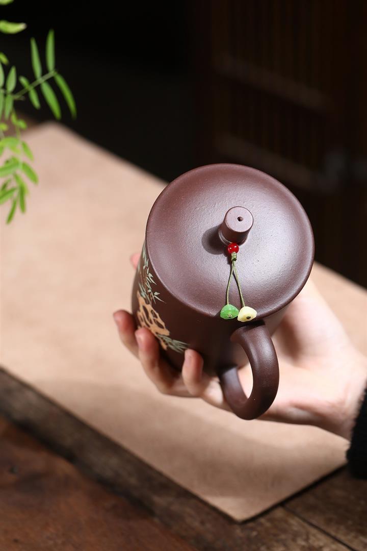 450cc原礦紫泥竹影蓋杯茶杯POT10067