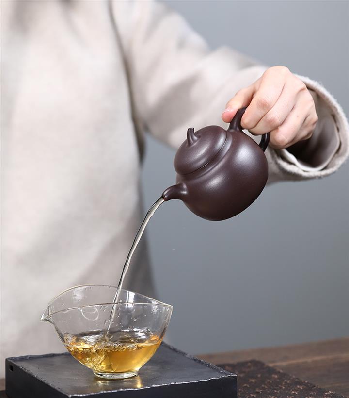 【泥料特點】砂土氣重,似淳實農民,日久使用,漸露鋒芒,養成變化,溫潤莊重。紫砂是壹種雙重氣孔結構的多孔性材質,氣孔微細,密度高。用紫砂壺沏茶,不失原味,且香不渙散,得茶之真香真味。紫砂使用越久,壺身色澤越發光亮照人,氣韻溫雅。紫砂壺長久使用器身會因撫摸擦拭,變得越發溫潤光澤。