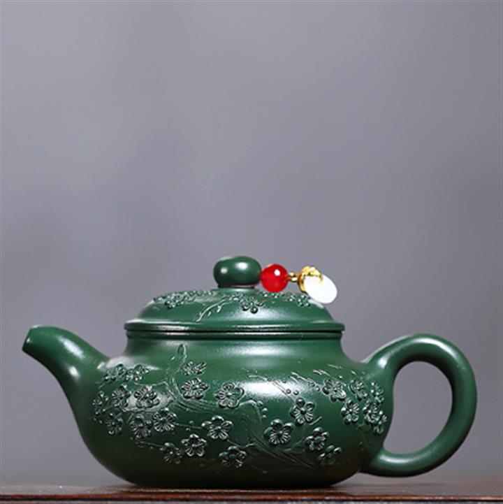 180cc原礦綠泥泥繪梅花仿古泡茶壺POT10090