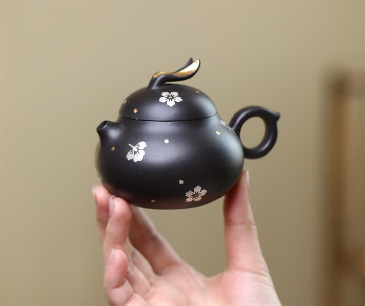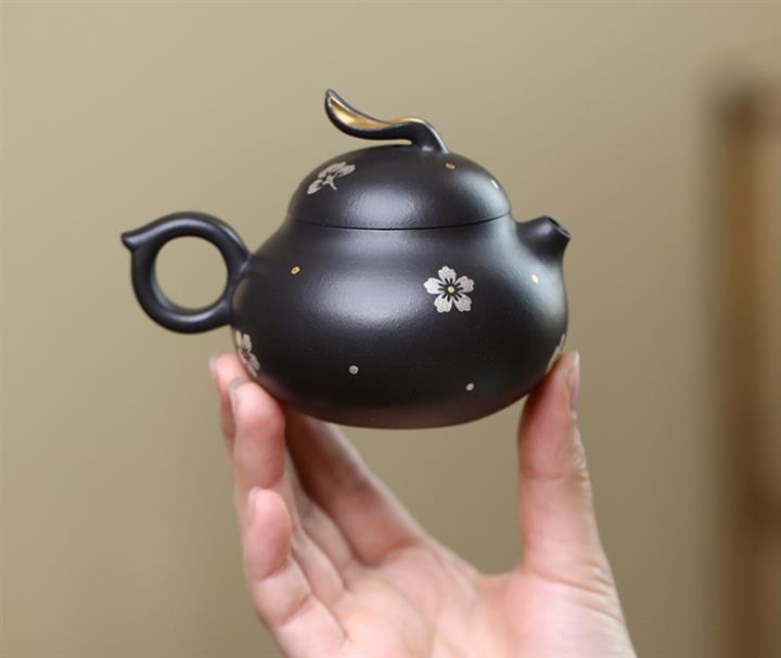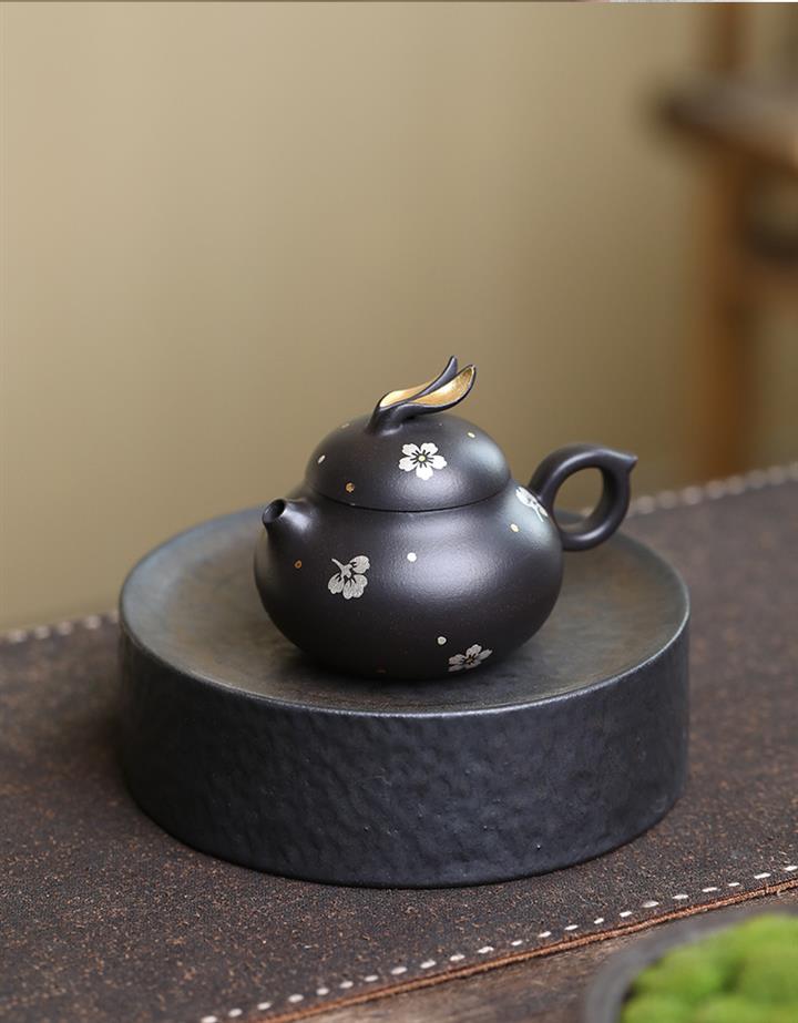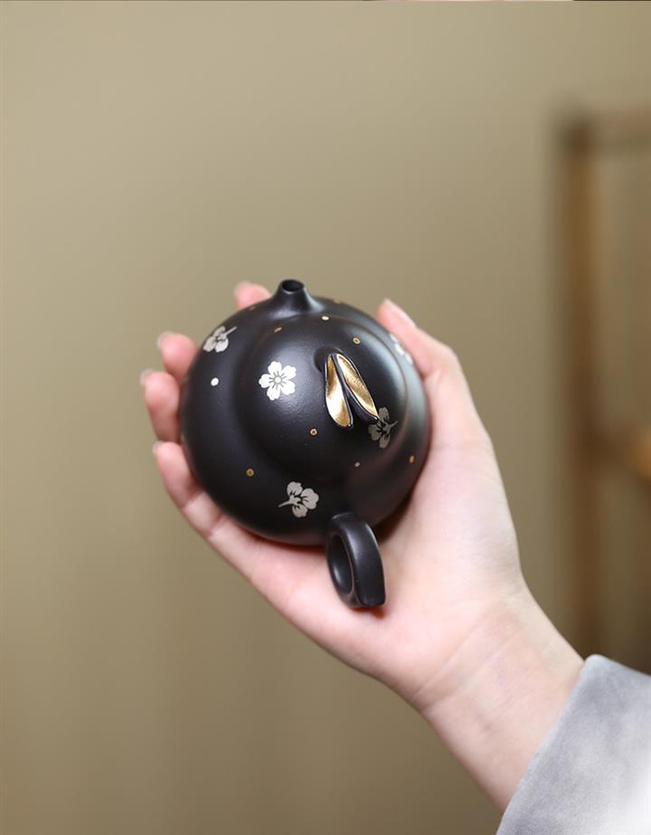 140cc原礦黑泥描金描銀兔子泡茶壺POT10075